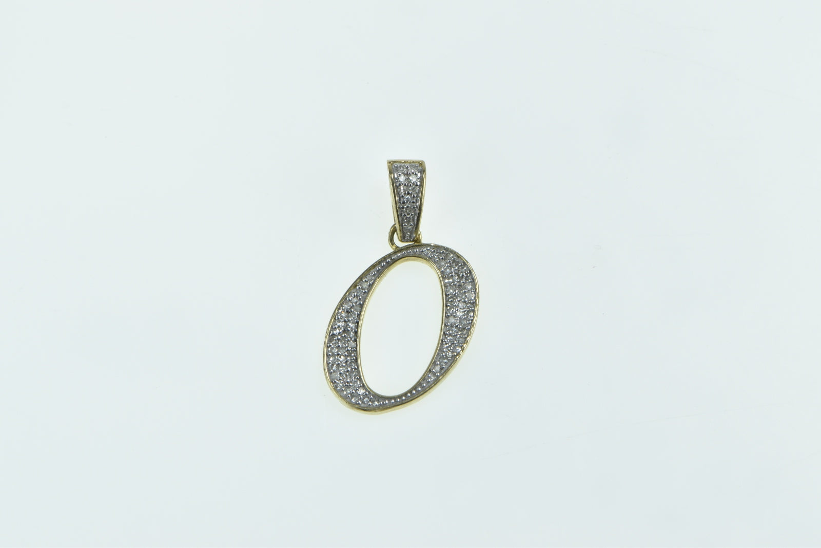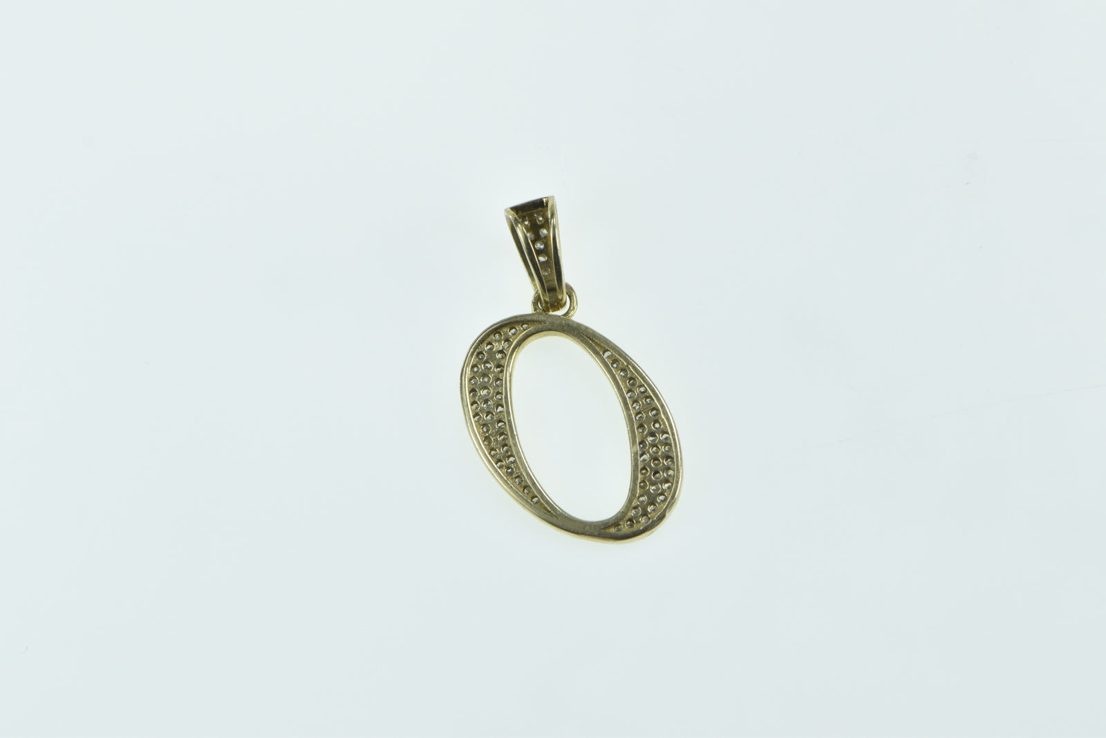 ·Item: 14K O Letter Monogram Name Diamond Encrusted Pendant Yellow Gold