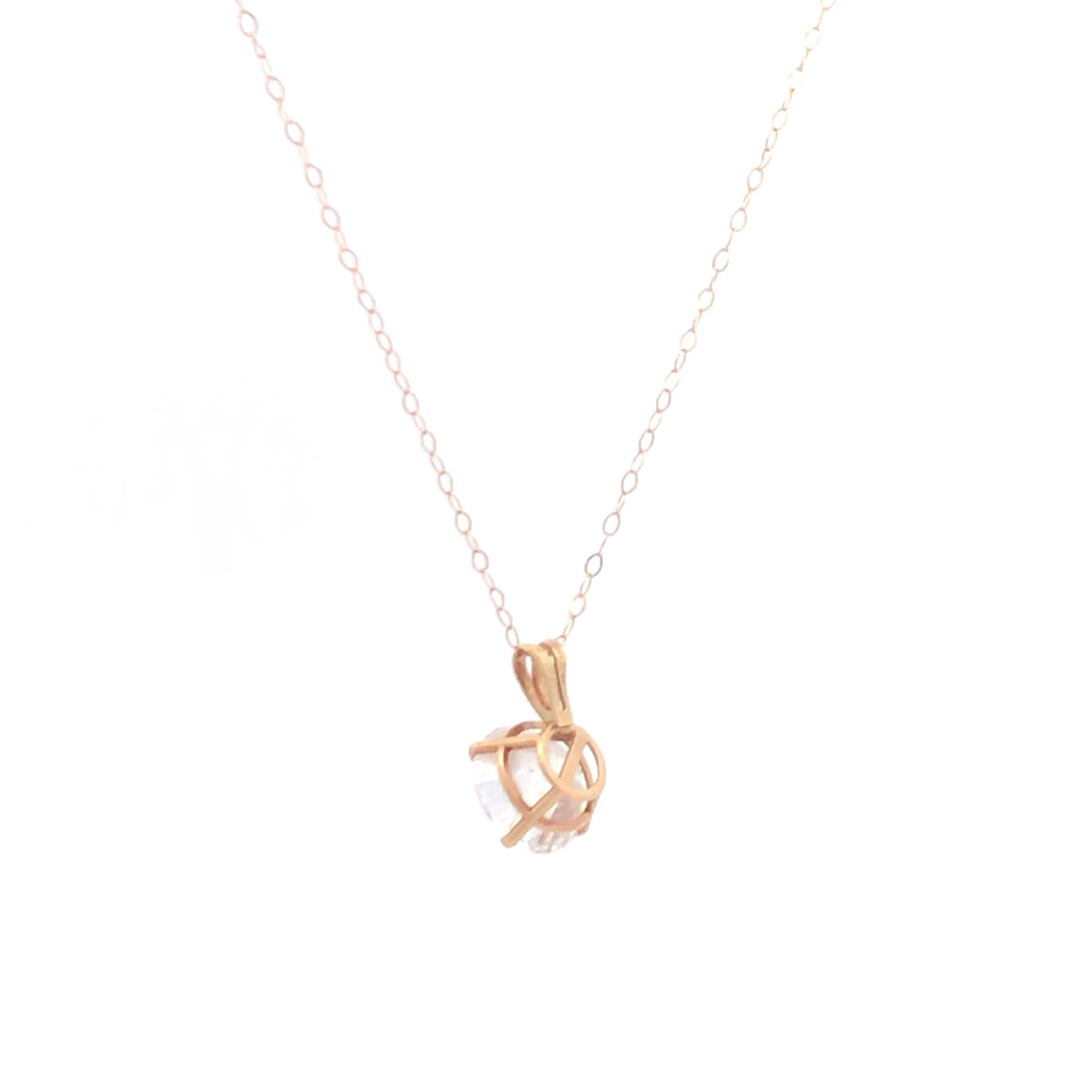 14K Round CZ Solitaire Vintage Simple Classic Pendant Yellow Gold