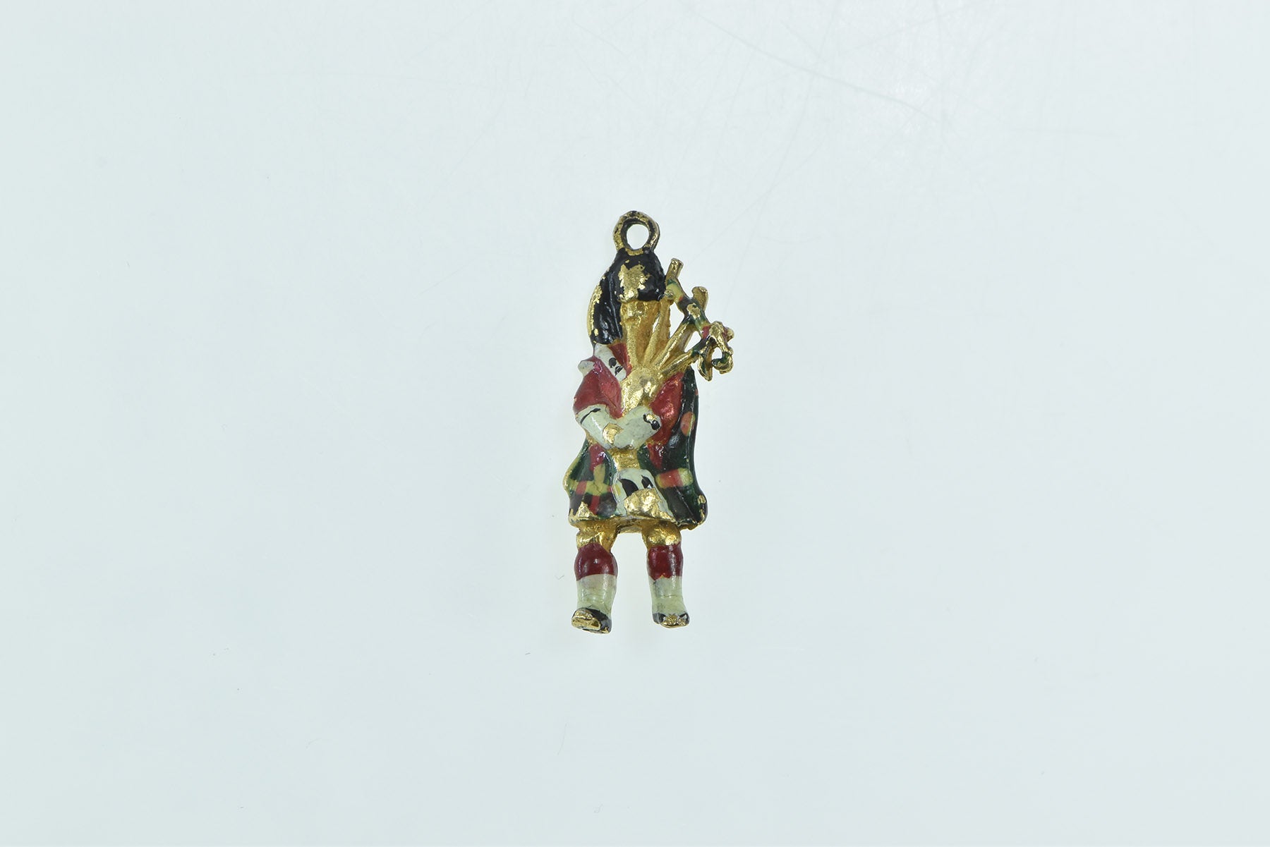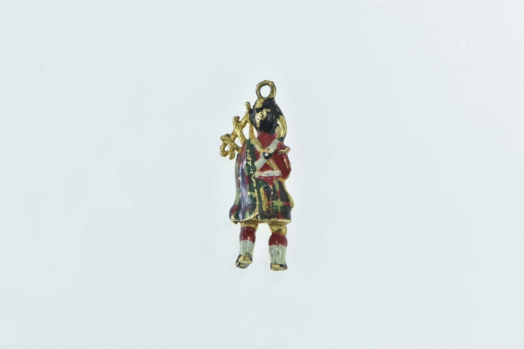 ·Item: 9K 3D Scottish Bagpipe Musician Vintage Enamel Charm/Pendant Yellow Gold