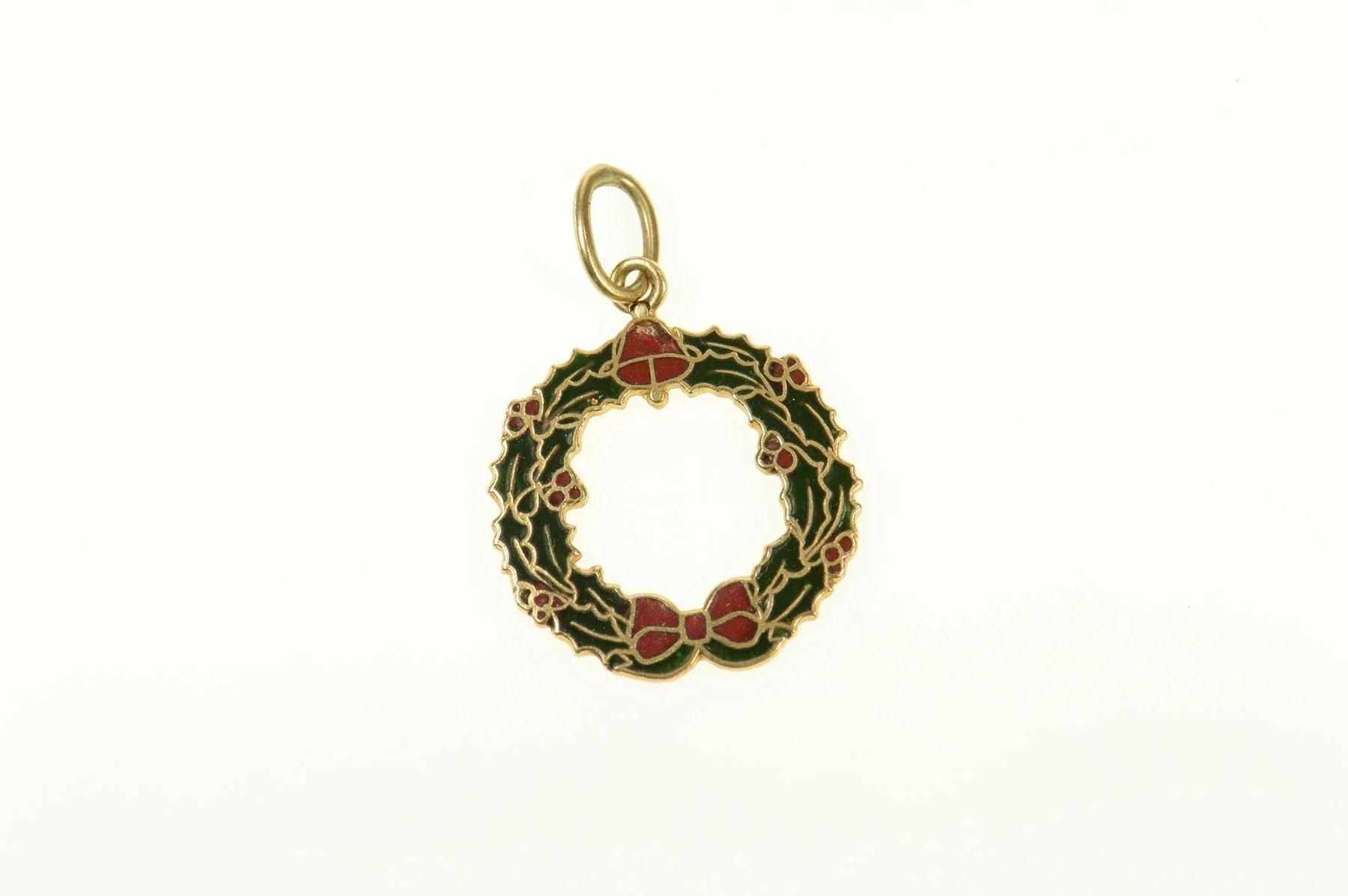 Gold Filled Holiday Wreath Enamel Christmas Bow Charm/Pendant