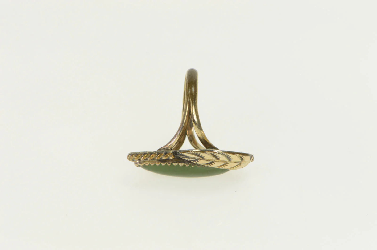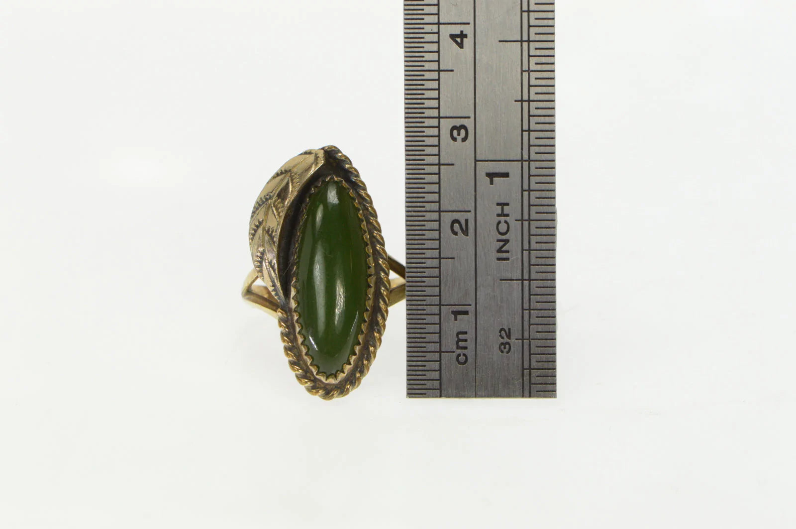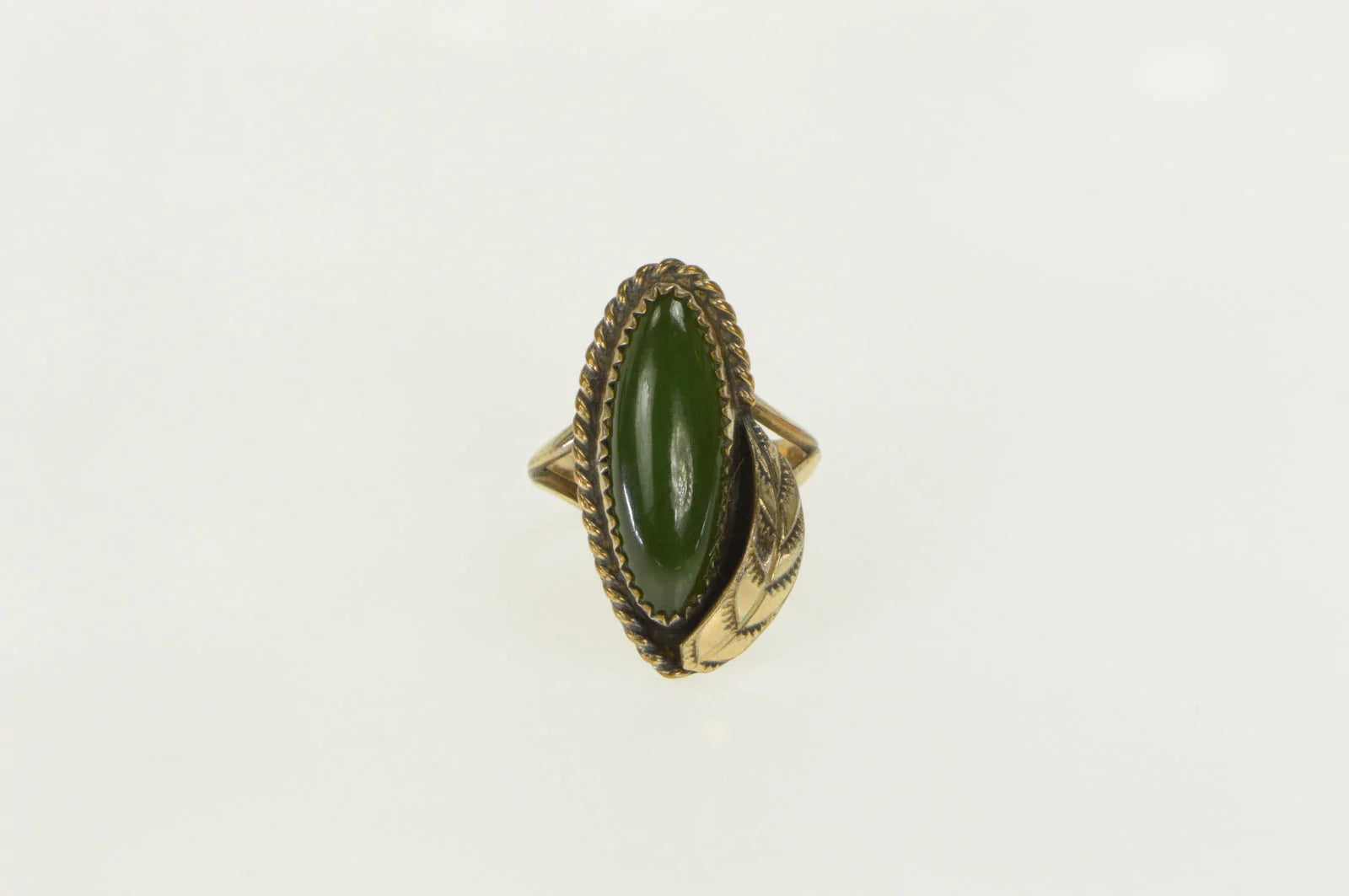 ·Item: Gold Filled Nephrite Southwestern Feather Leaf Vintage Ring Size 6.75