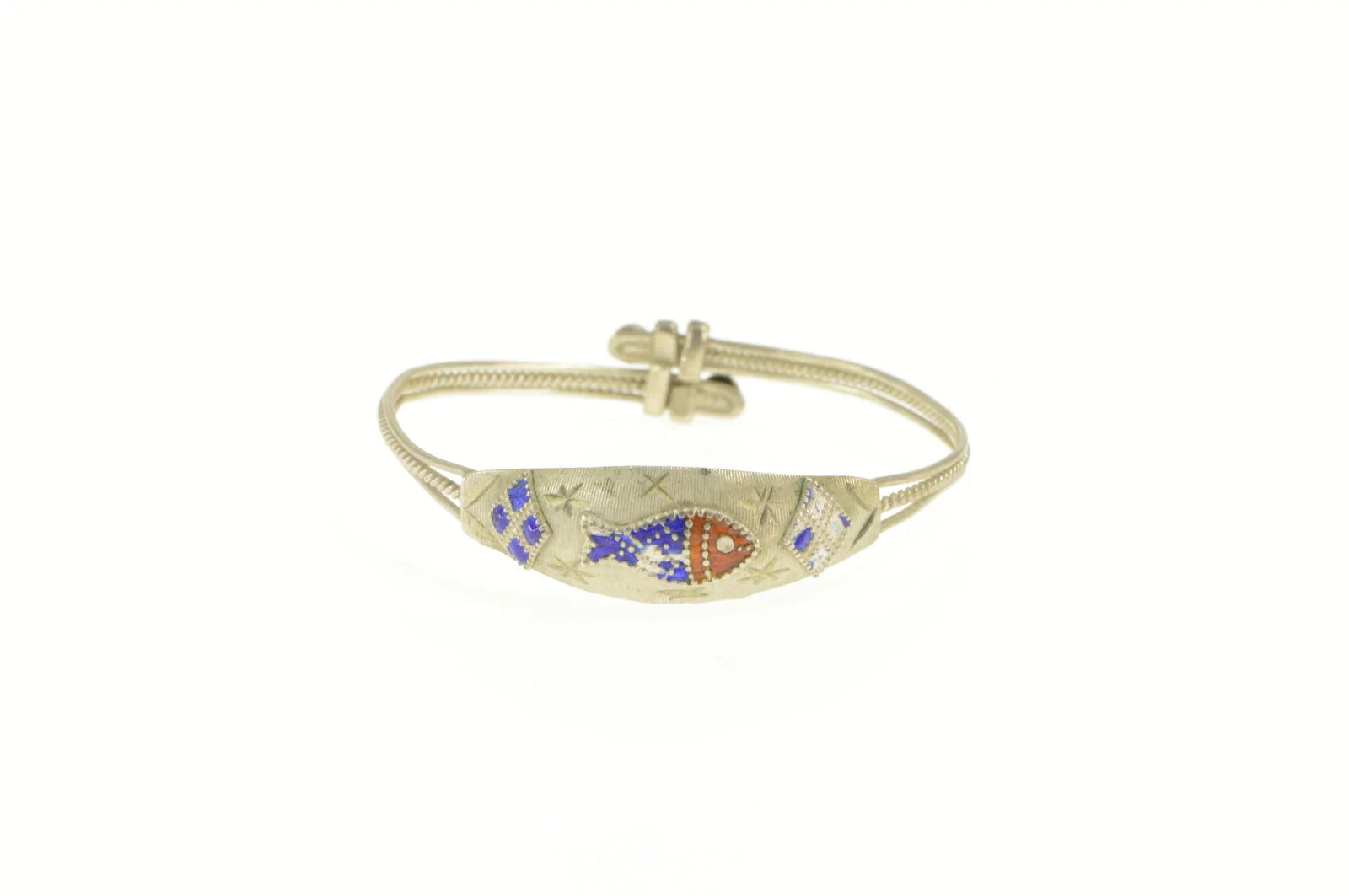 ·Item: Silver Enamel Fish Design Child's Adjustable Bangle Bracelet 4.75-5.75"
