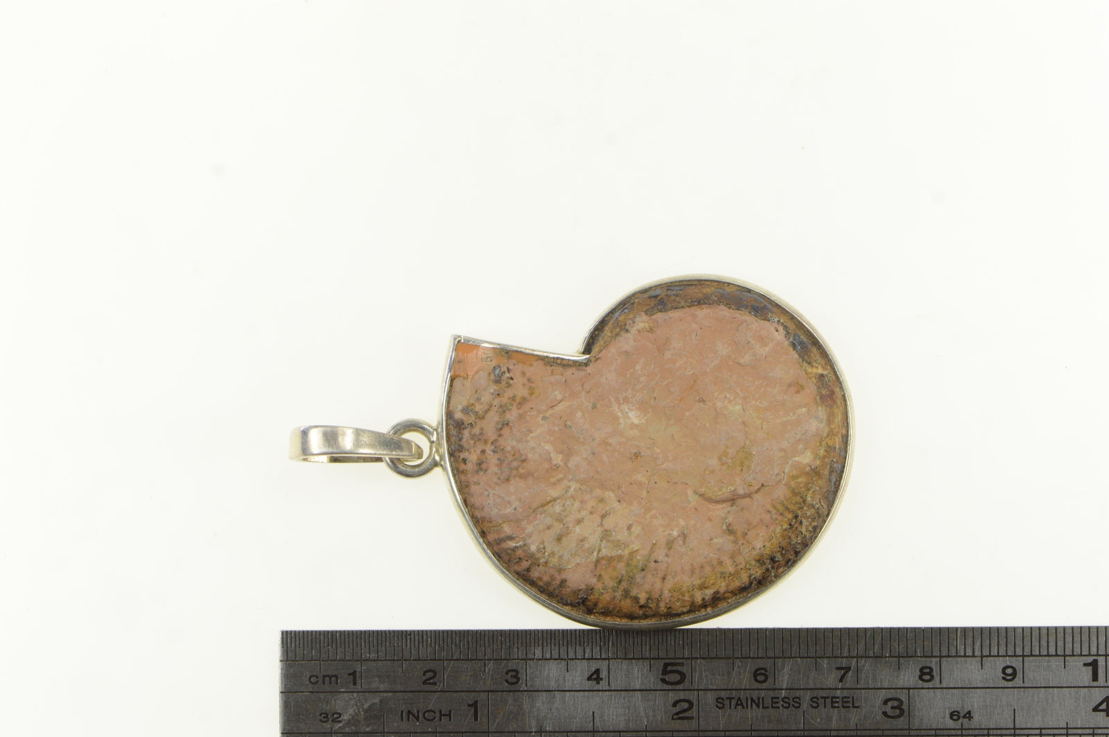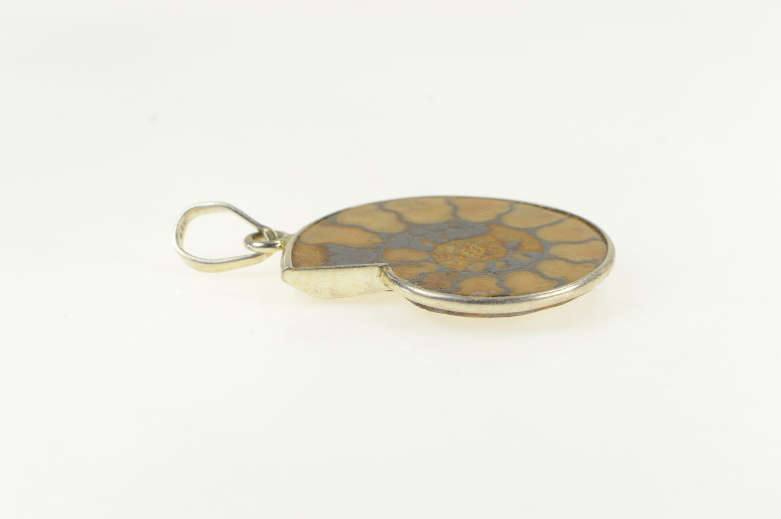 ·Item: Sterling Silver Ammolite Fossil Shell Ornate Medallion Pendant