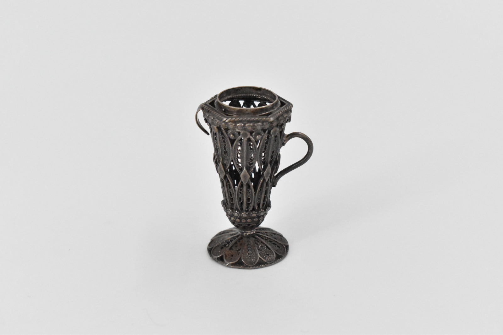 ·Item: Sterling Silver Antique Filigree Shuman Small Candle Holder