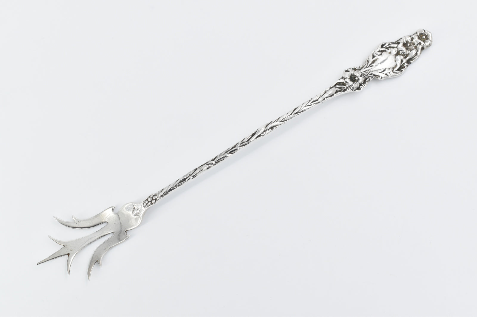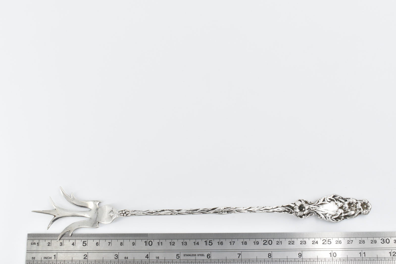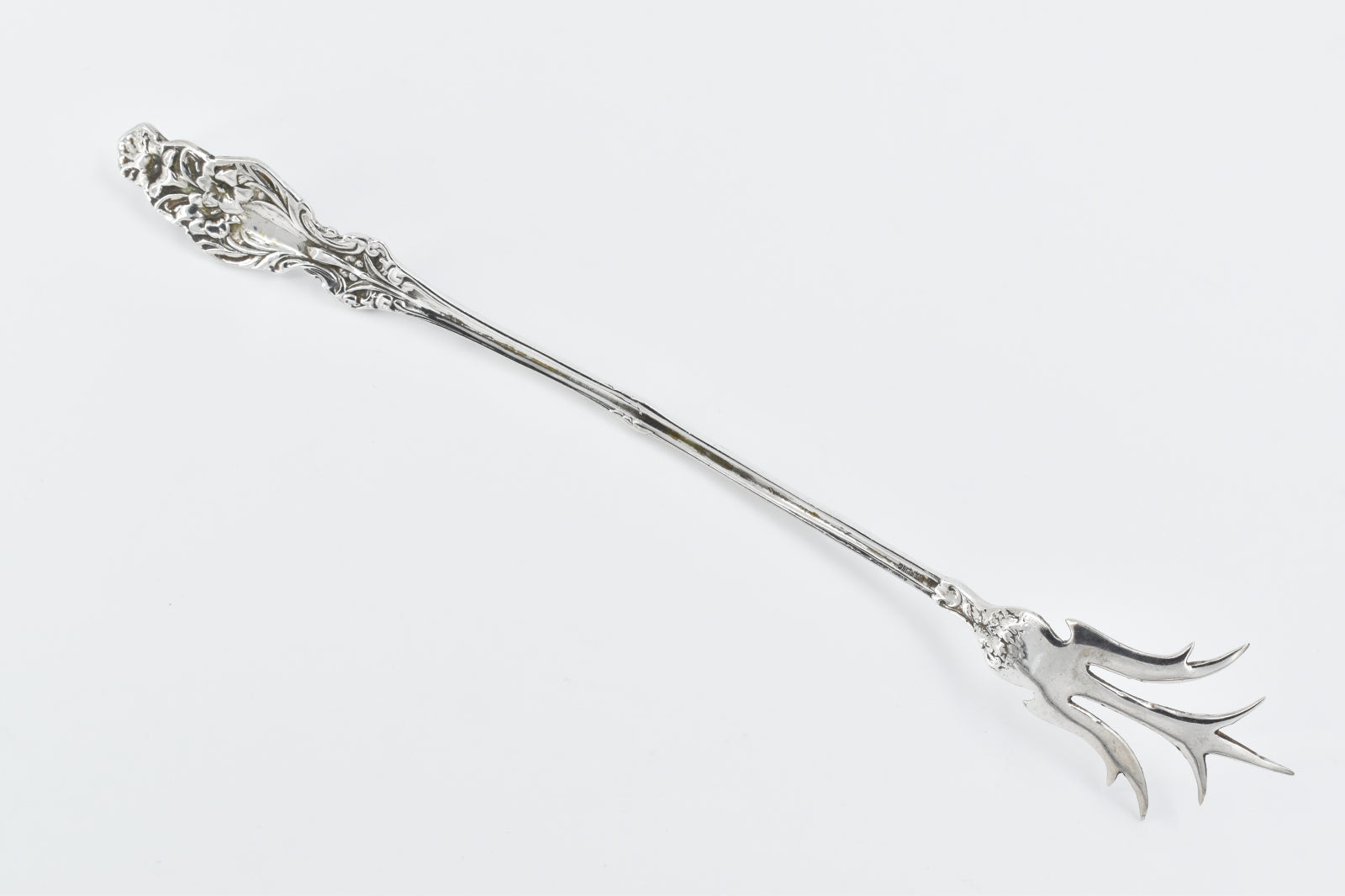 ·Item: Sterling Silver Antique Lily Pattern Ornate Meat Serving Fork