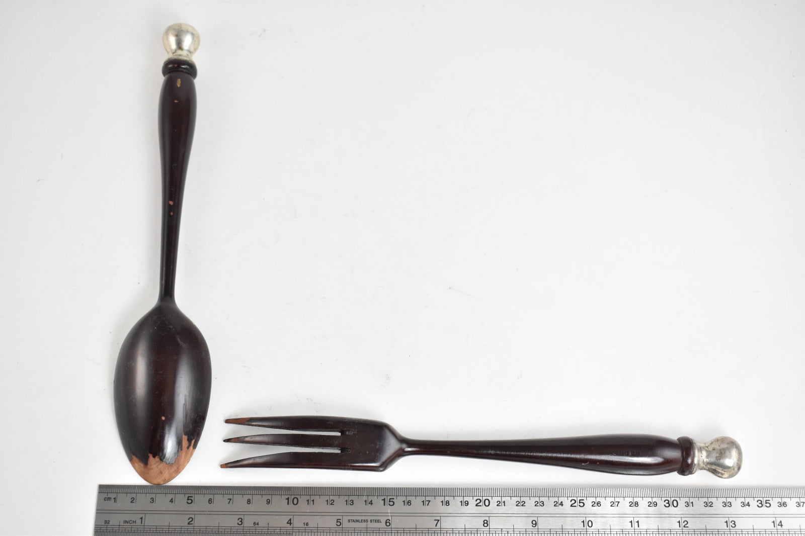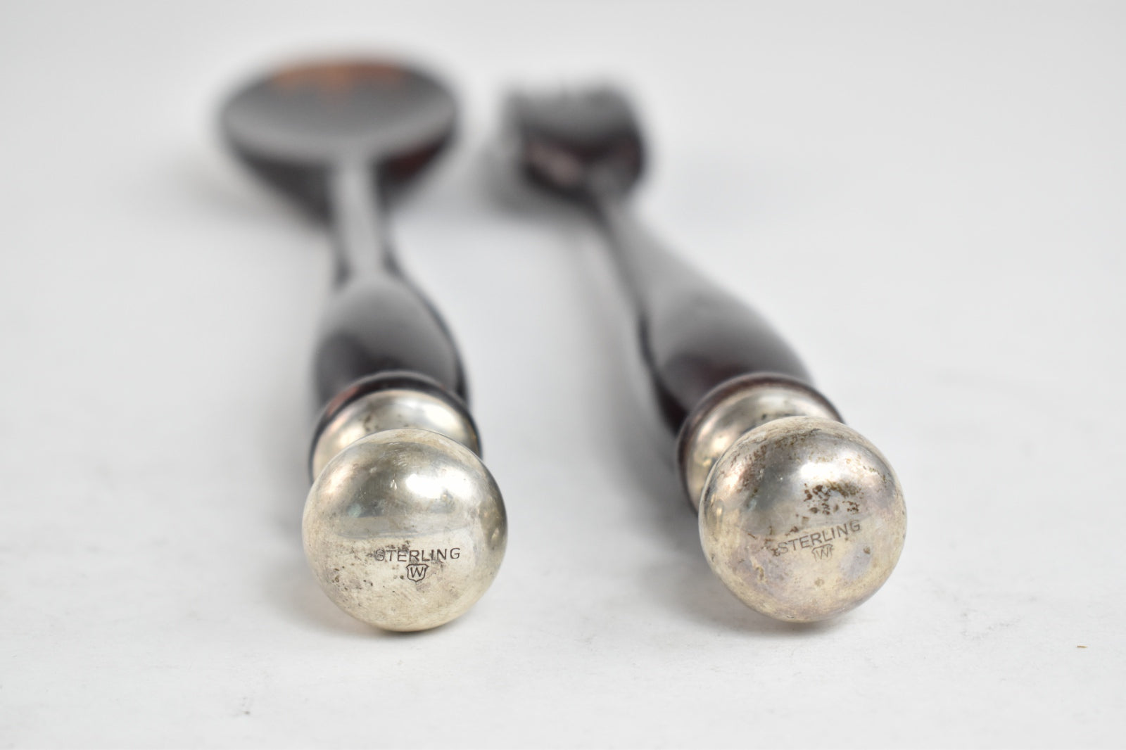 ·Item: Sterling Silver Antique Wooden Salad Serving Fork Spoon Set