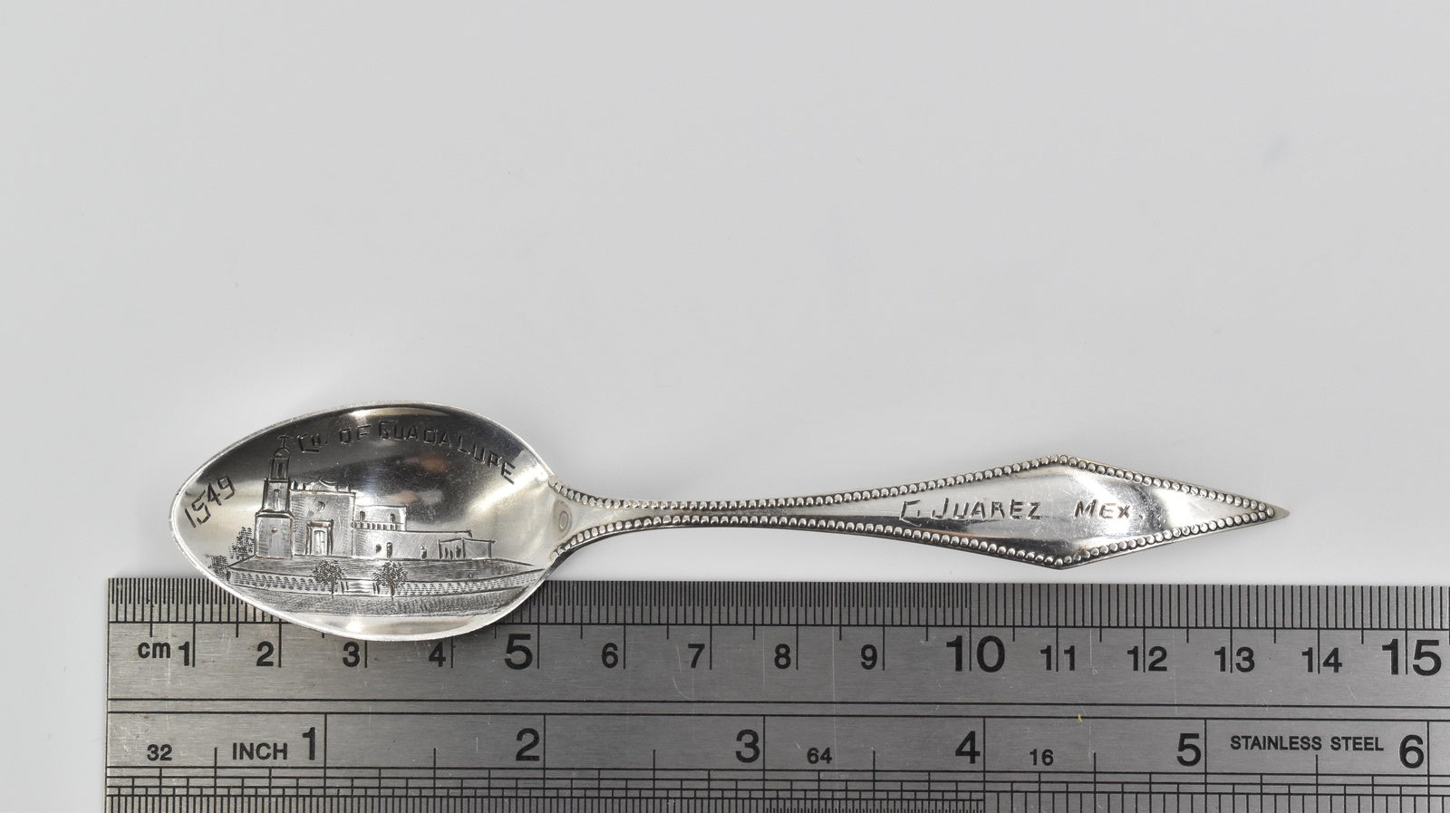 ·Item: Sterling Silver Ciudad Juarez Mexico Church of Guadalupe Souvenir Spoon