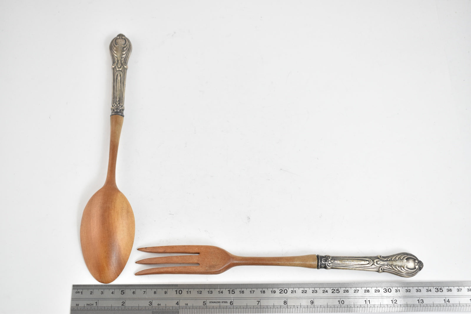 ·Item: Sterling Silver Crown Wooden Salad Serving Spoon & Fork Set (2 pcs.)