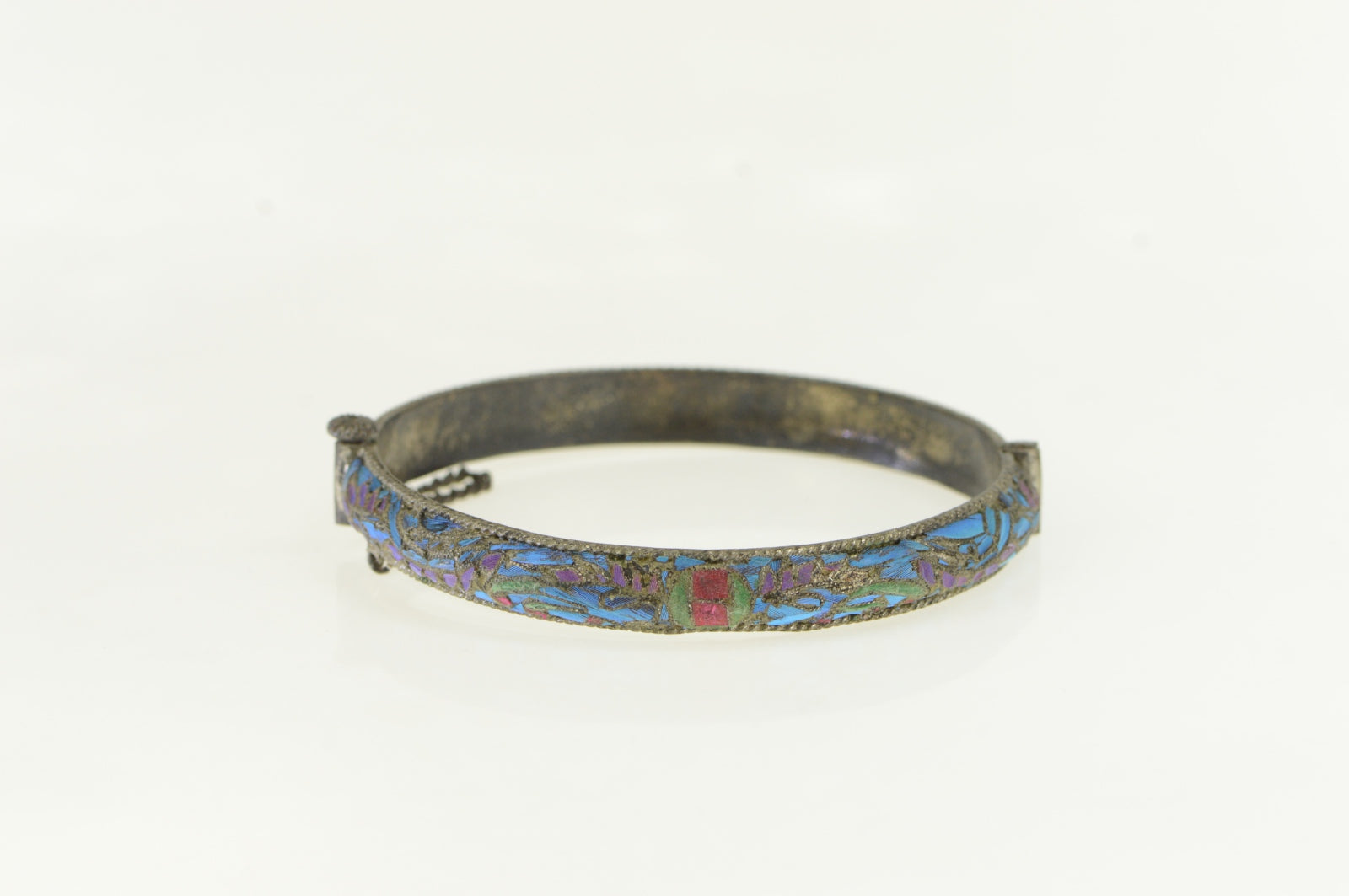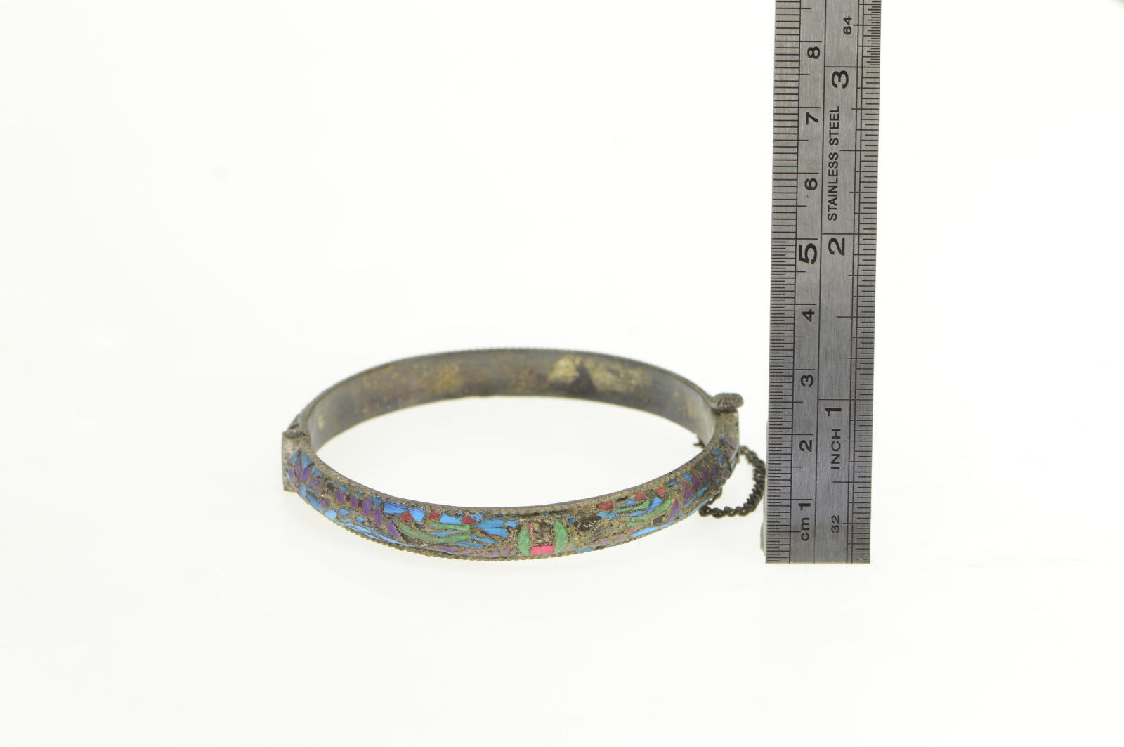 ·Item: Sterling Silver Feather Inlay Vintage Statement Bangle Bracelet 8"