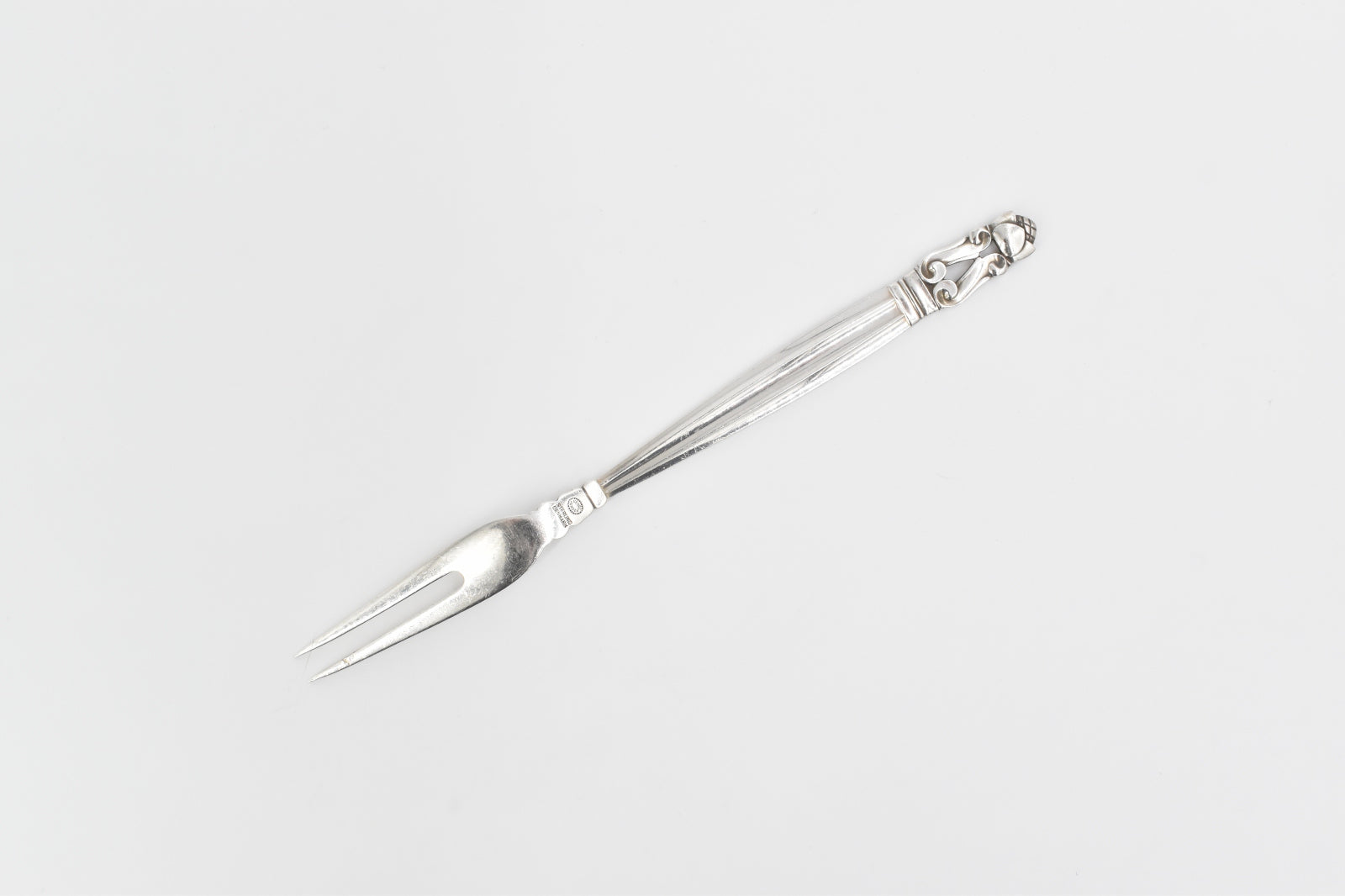 ·Item: Sterling Silver Georg Jensen Acorn Short Handle Pickle/Olive Fork