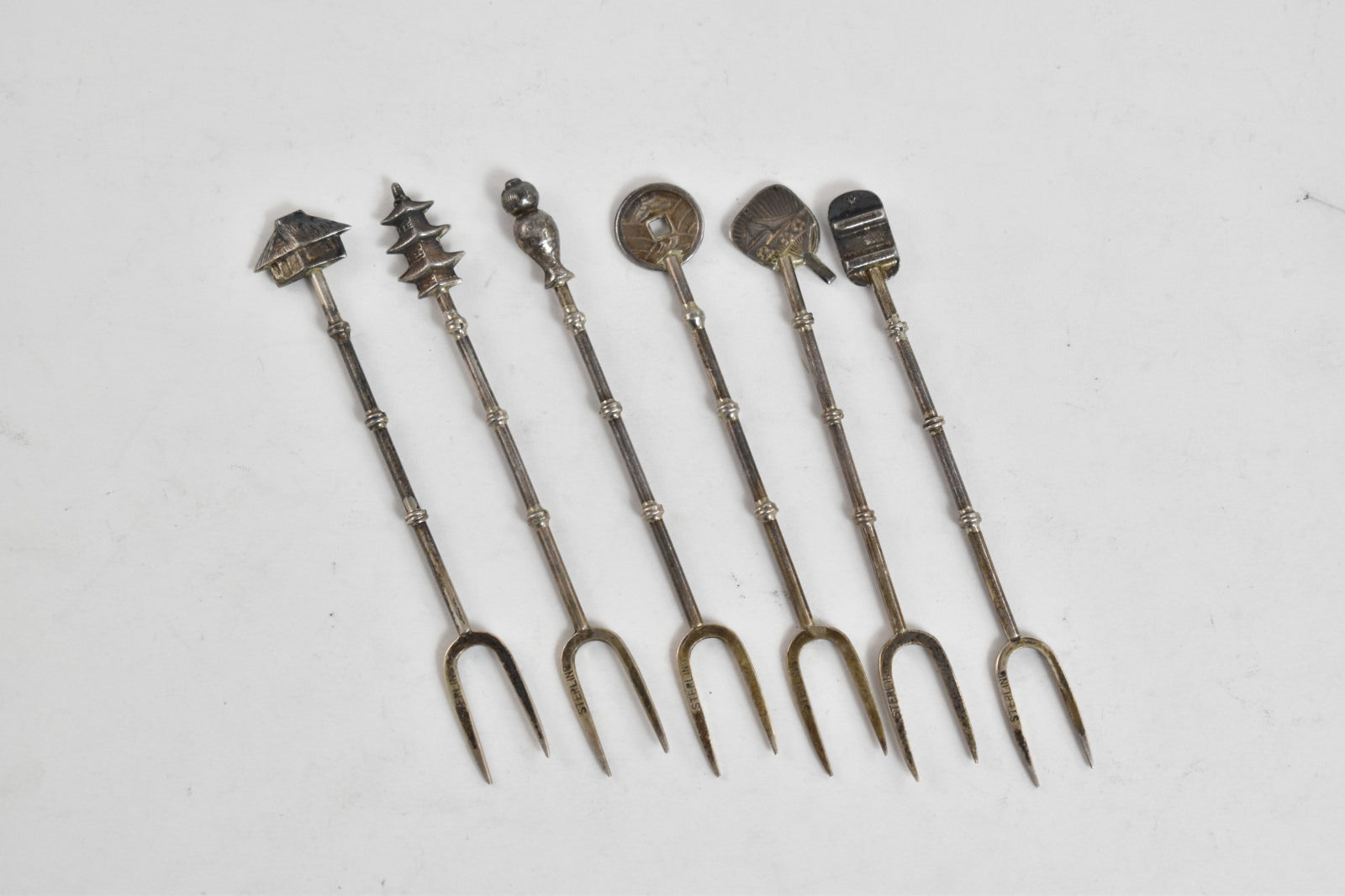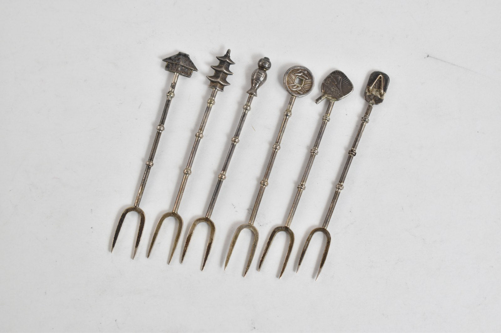 ·Item: Sterling Silver Japanese Motif Travel Hors D'oeuvres Fork Set (6 pcs)