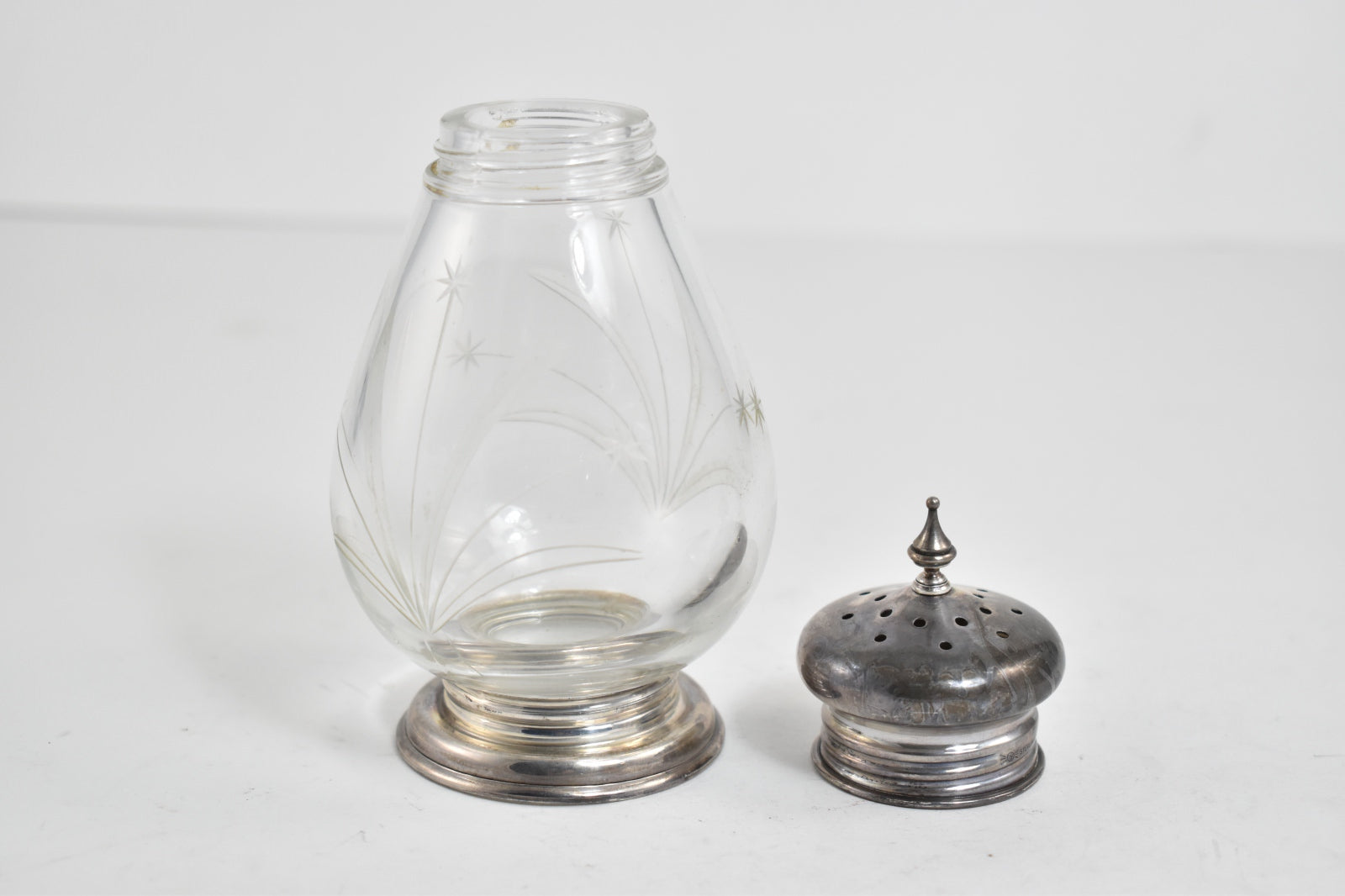 ·Item: Sterling Silver Mid Century Glass Salt Pepper Shaker