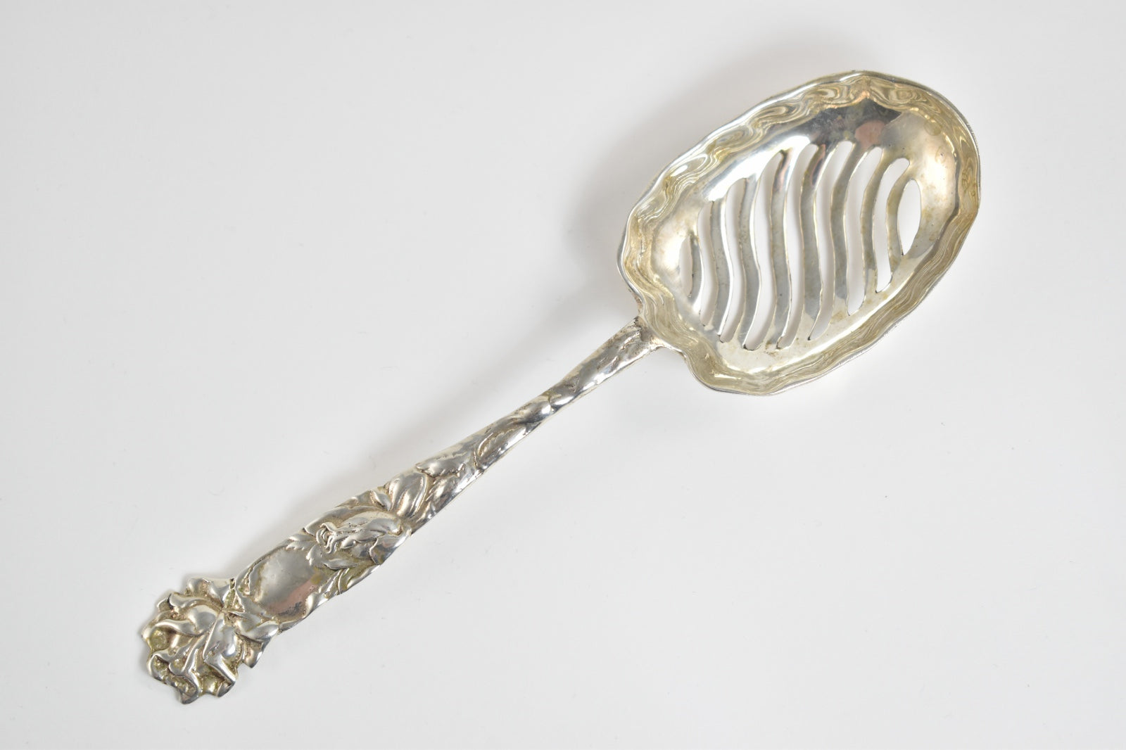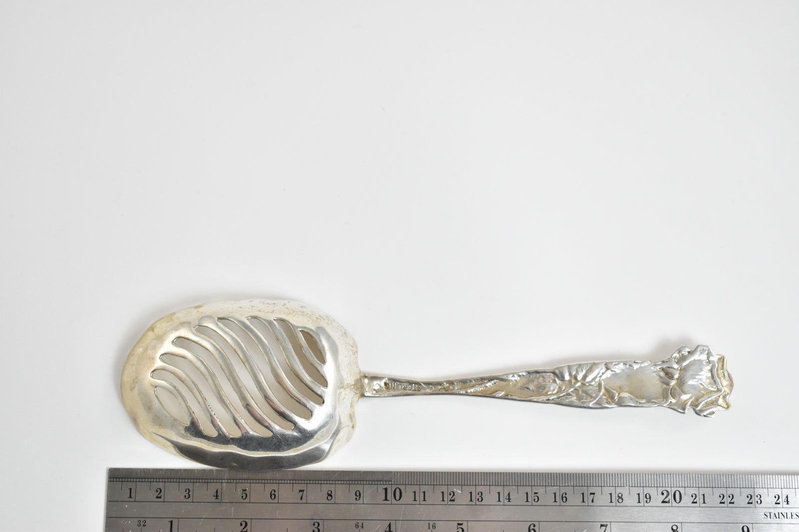 ·Item: Sterling Silver Ornate Floral Antique Pierced Serving Spoon