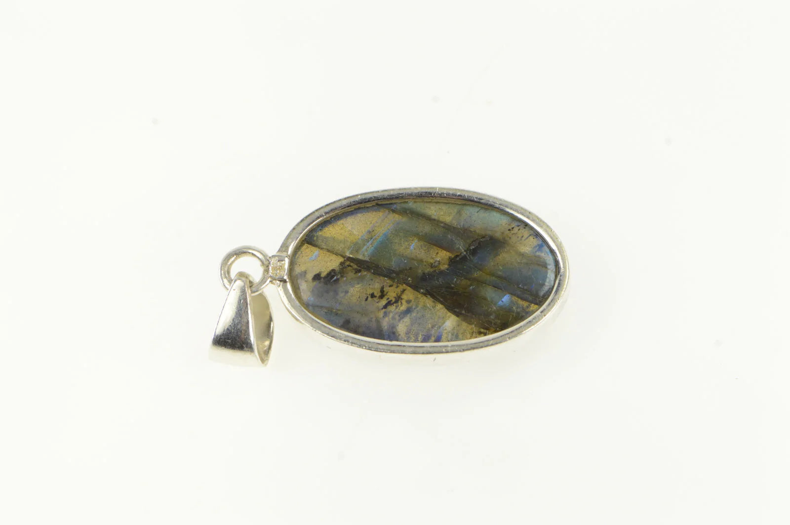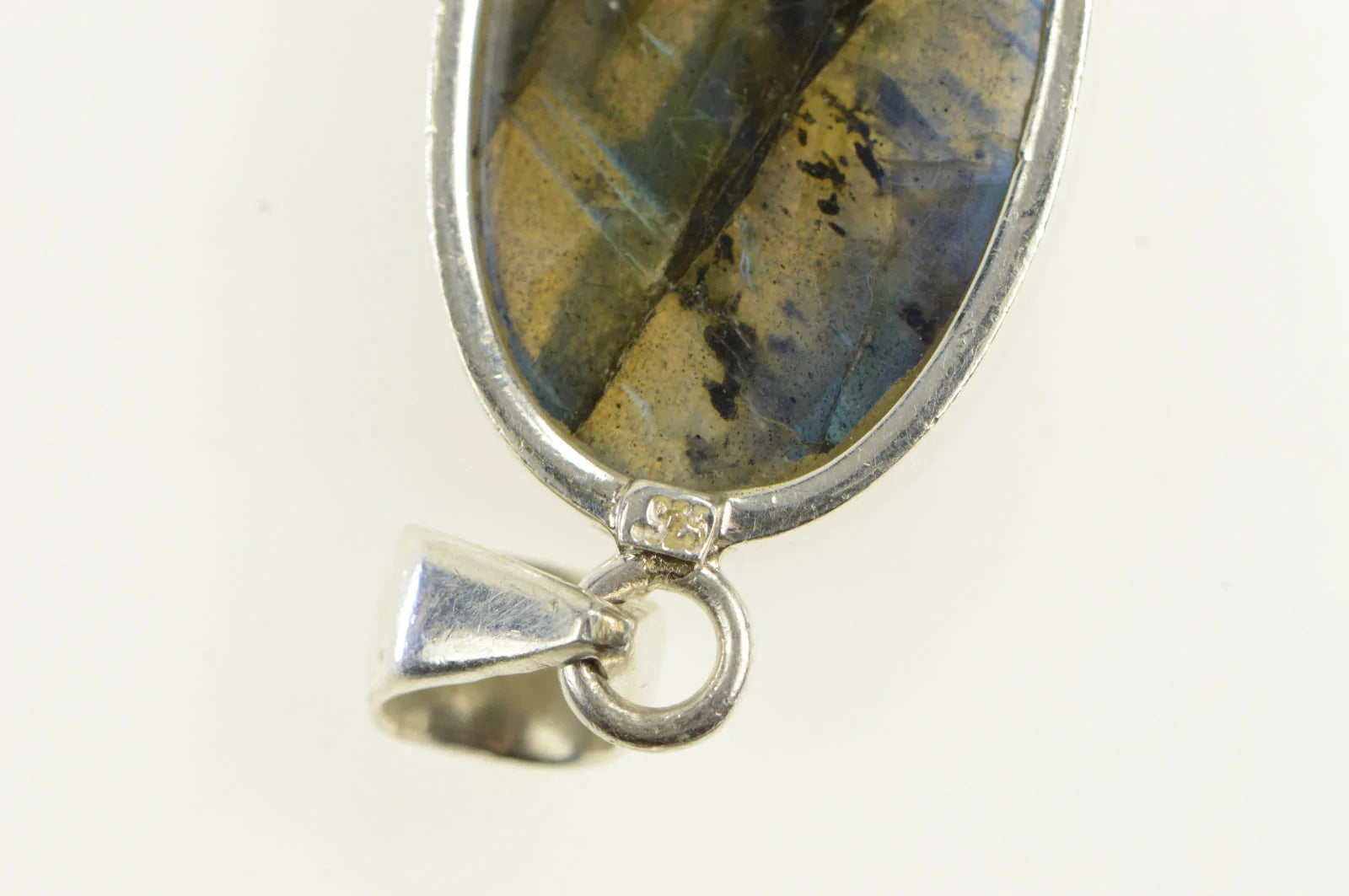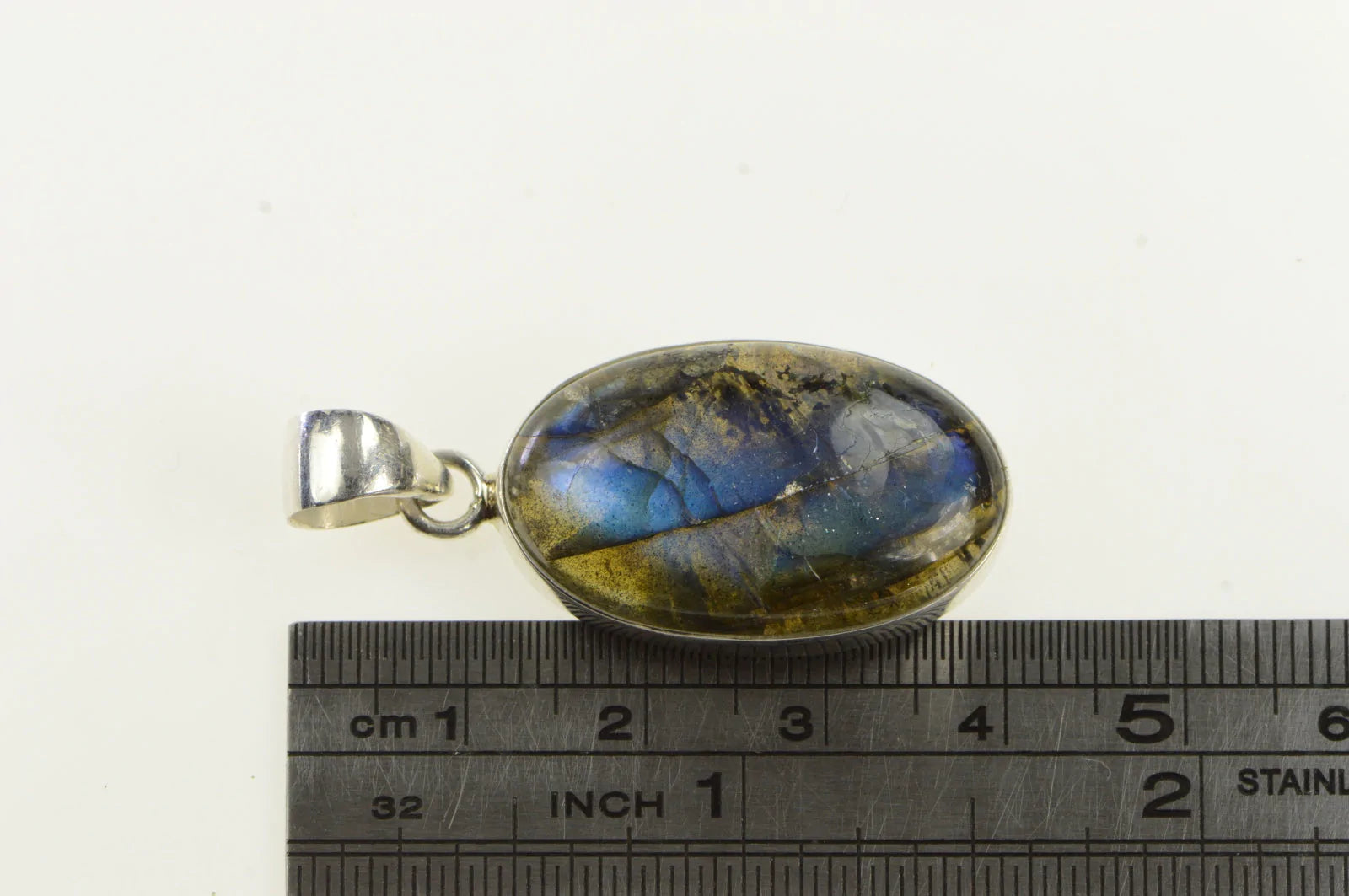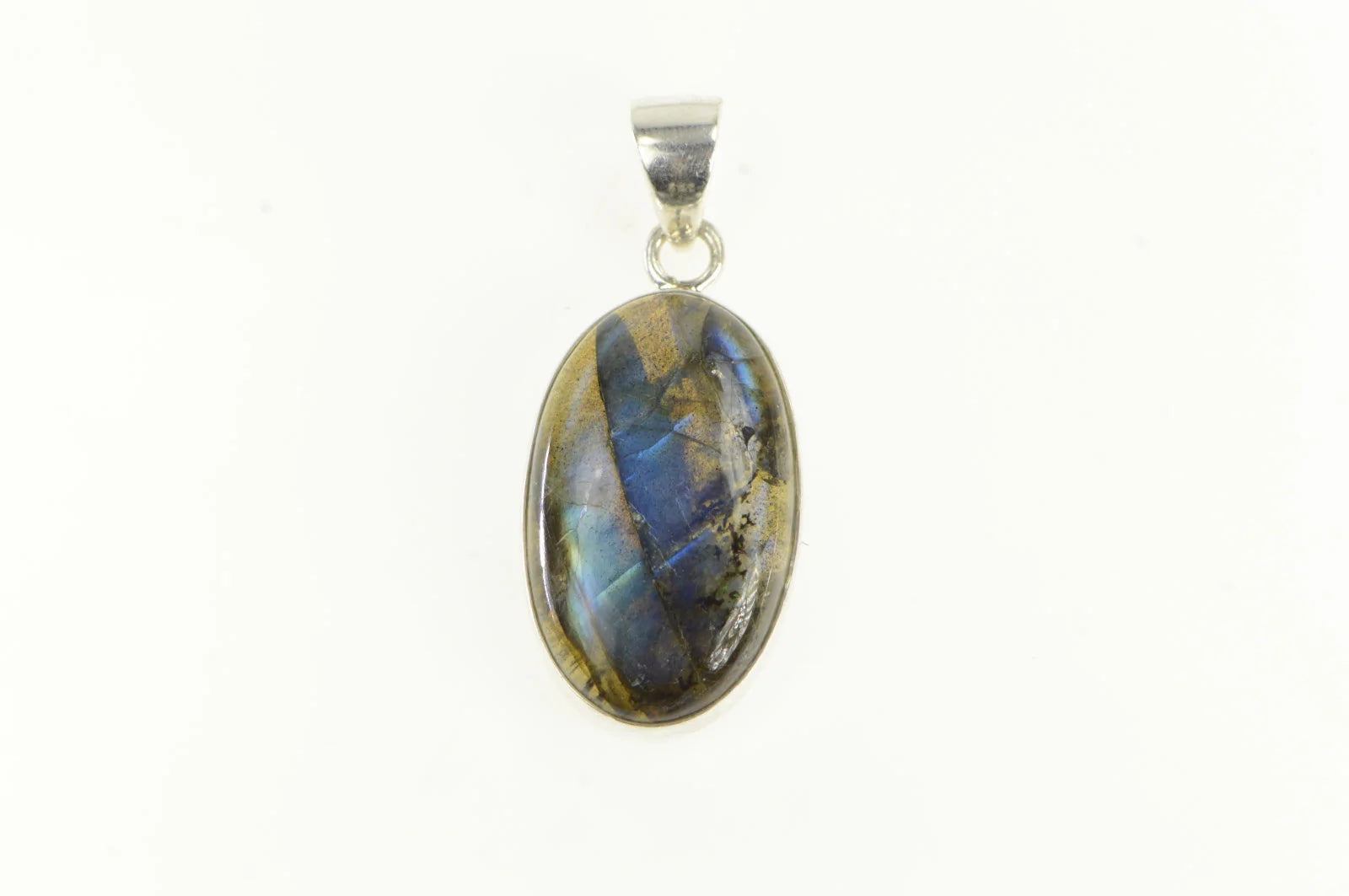 Sterling Silver Oval Labradorite Cabochon Statement Pendant