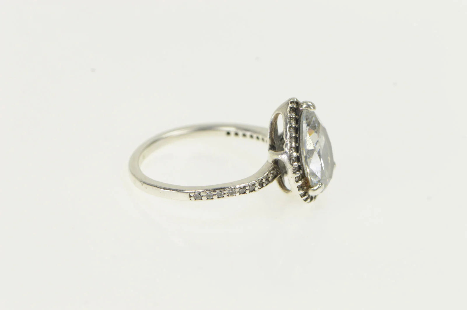 ·Item: Sterling Silver Pandora Sparkling Teardrop Halo Promise Ring Size 5.5