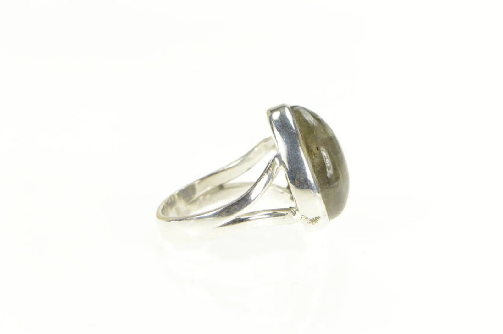 ·Item: Sterling Silver Pear Labradorite Cabochon Bezel Statement Ring Size 6