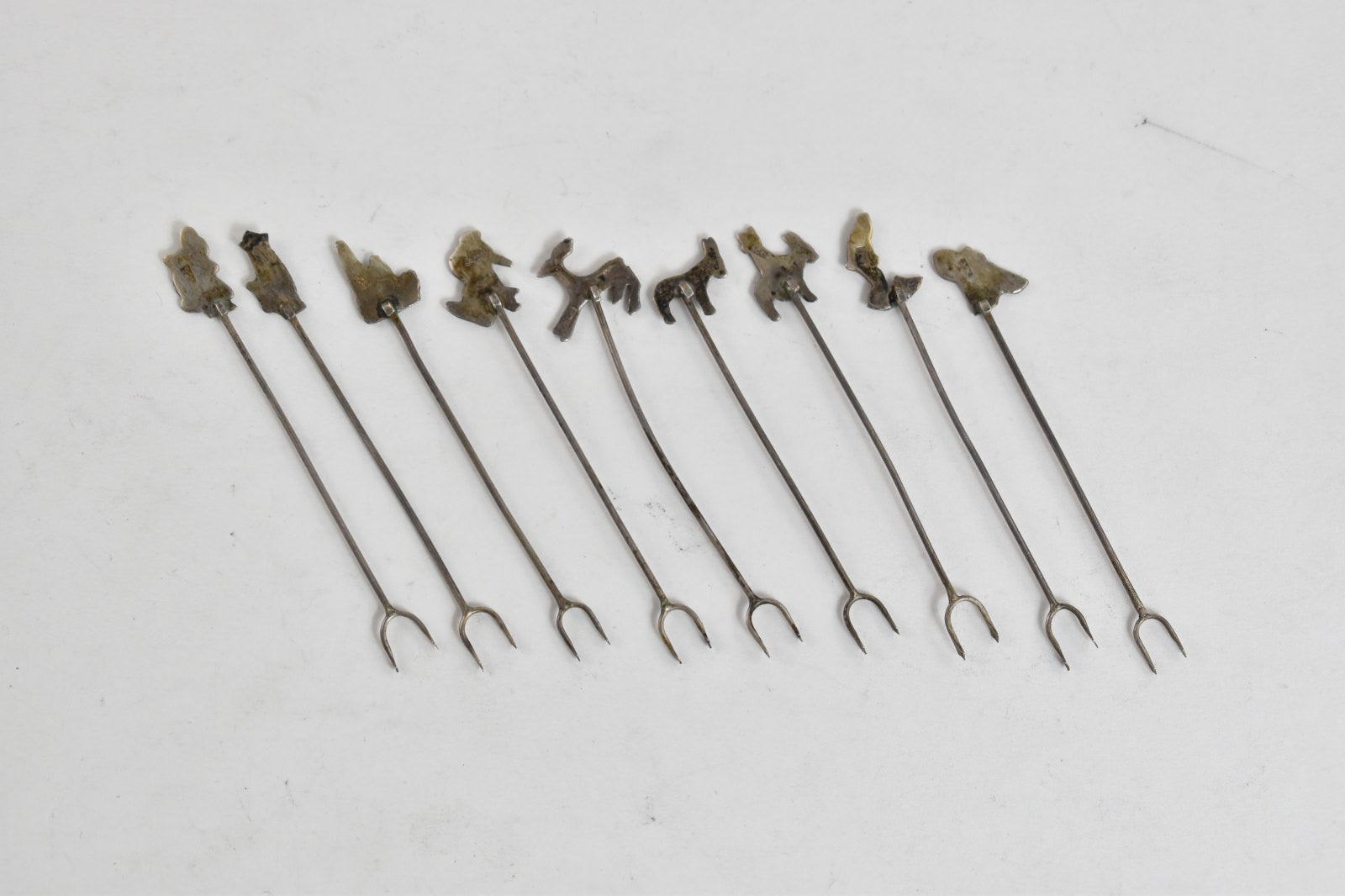·Item: Sterling Silver Peru Peruvian Motif Hors D'oeuvres Fork Set (9 pcs)