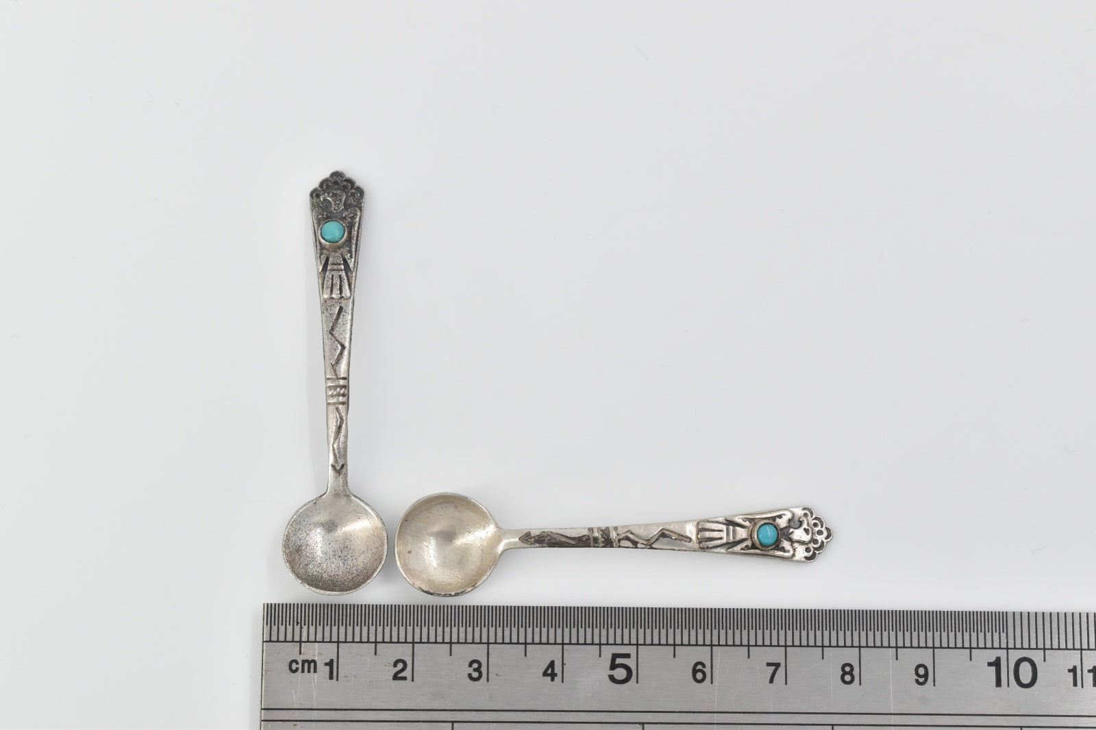 ·Item: Sterling Silver Southwestern Turquoise Eagle Bird Tiny Spoon 2 pcs