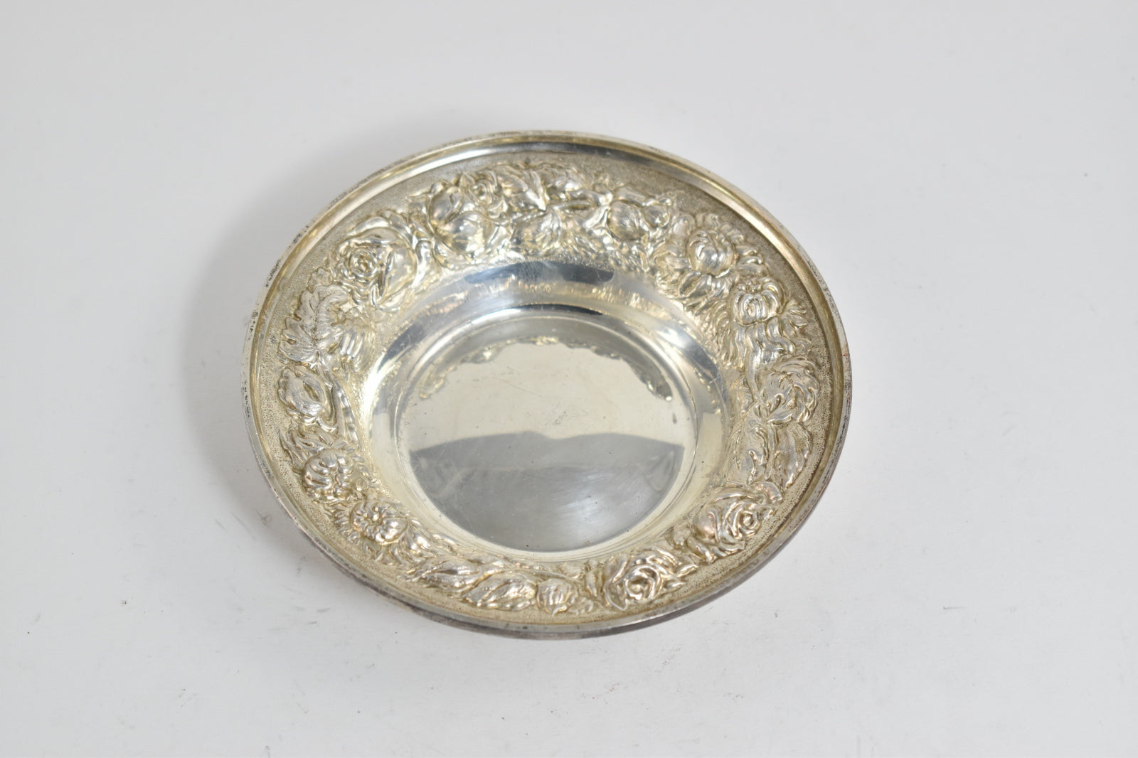 ·Item: Sterling Silver Stieff Sterling Ornate Repousse Floral Bowl 5.5"