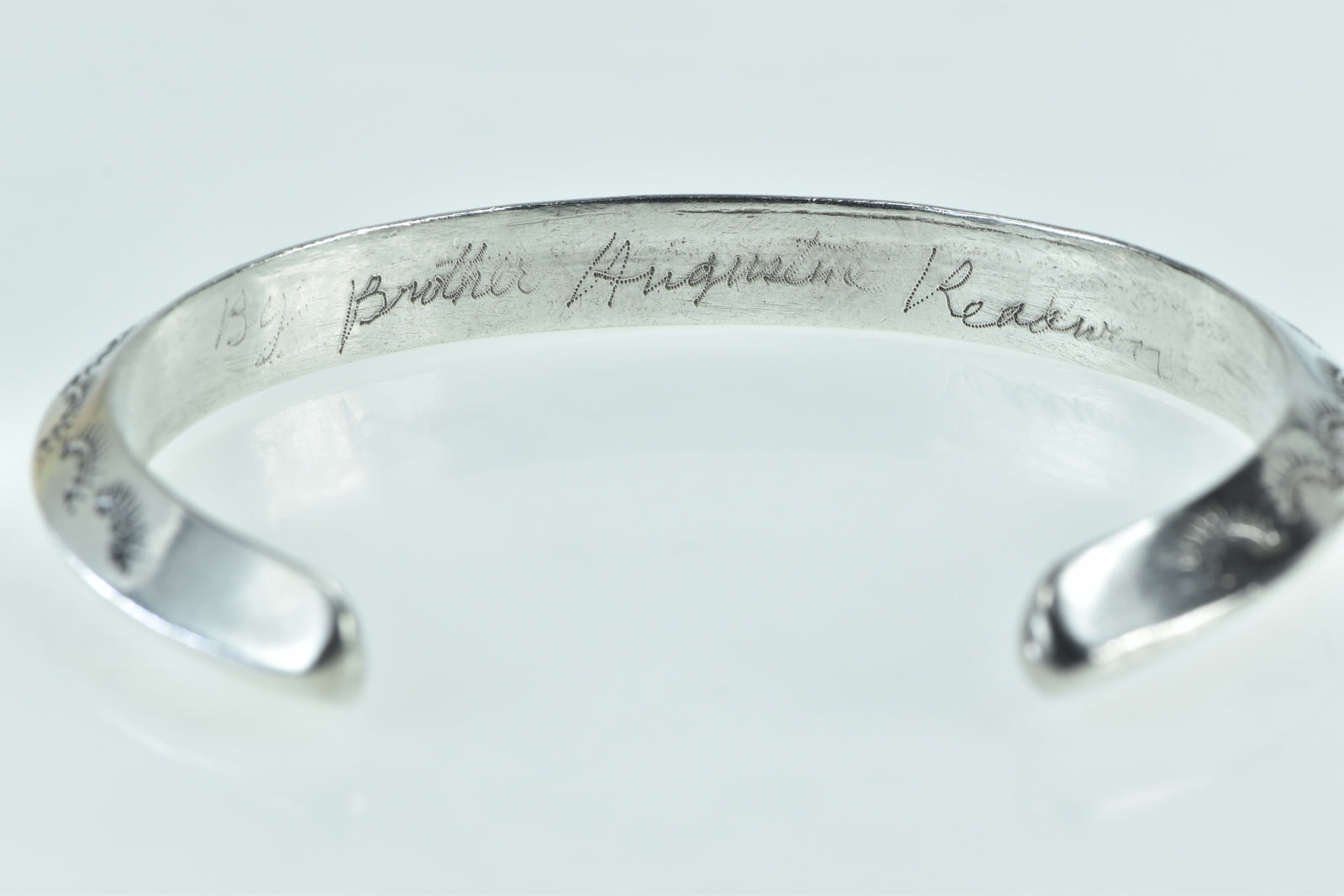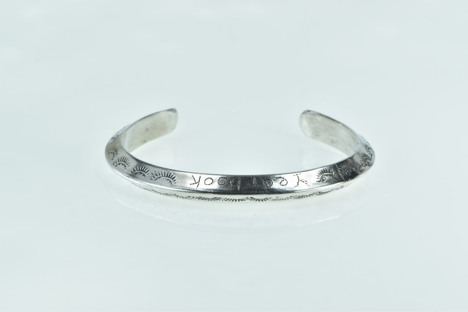 ·Item: Sterling Silver Vintage Stamped Yearbook Engraved Cuff Bracelet 6.75"