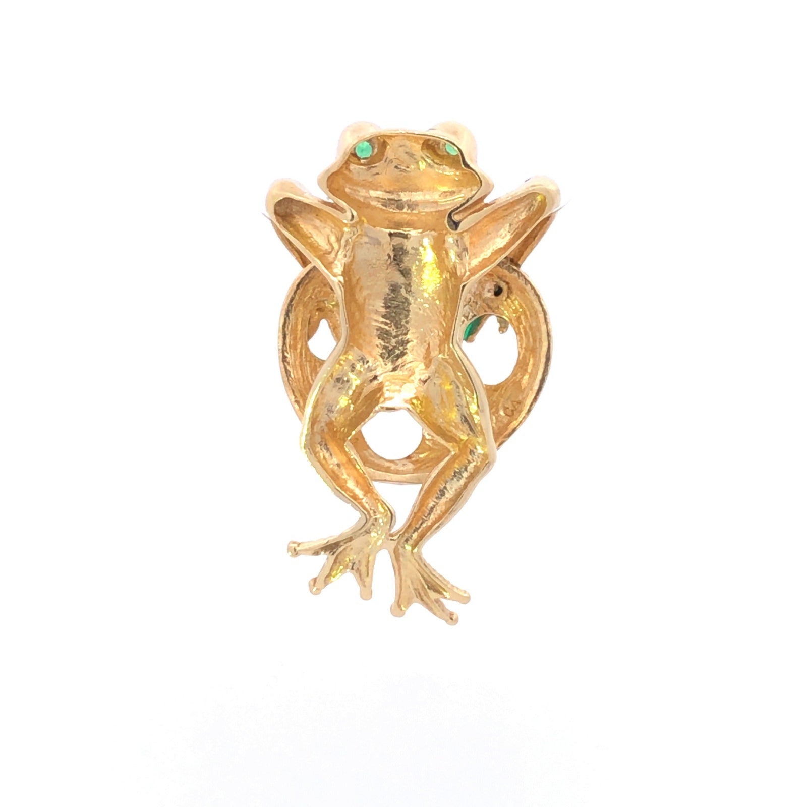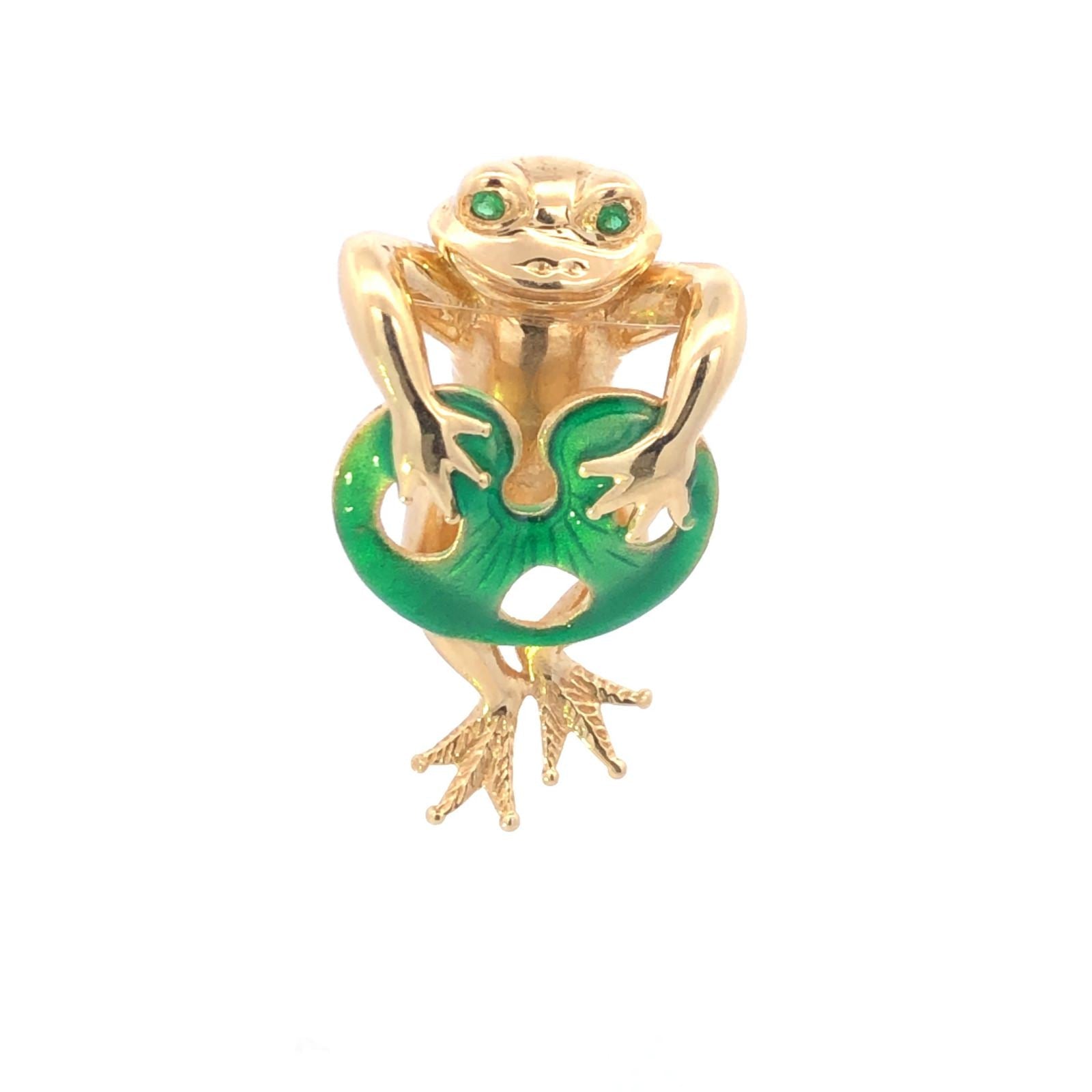 ·Item: 14K Green Enamel Emerald Eyed Frog Lily Pad Pendant Yellow Gold