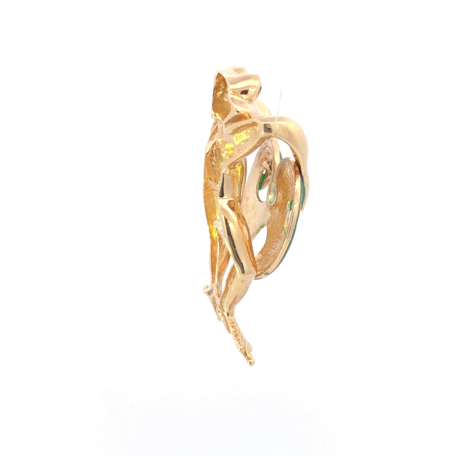 14K Green Enamel Emerald Eyed Frog Lily Pad Pendant Yellow Gold