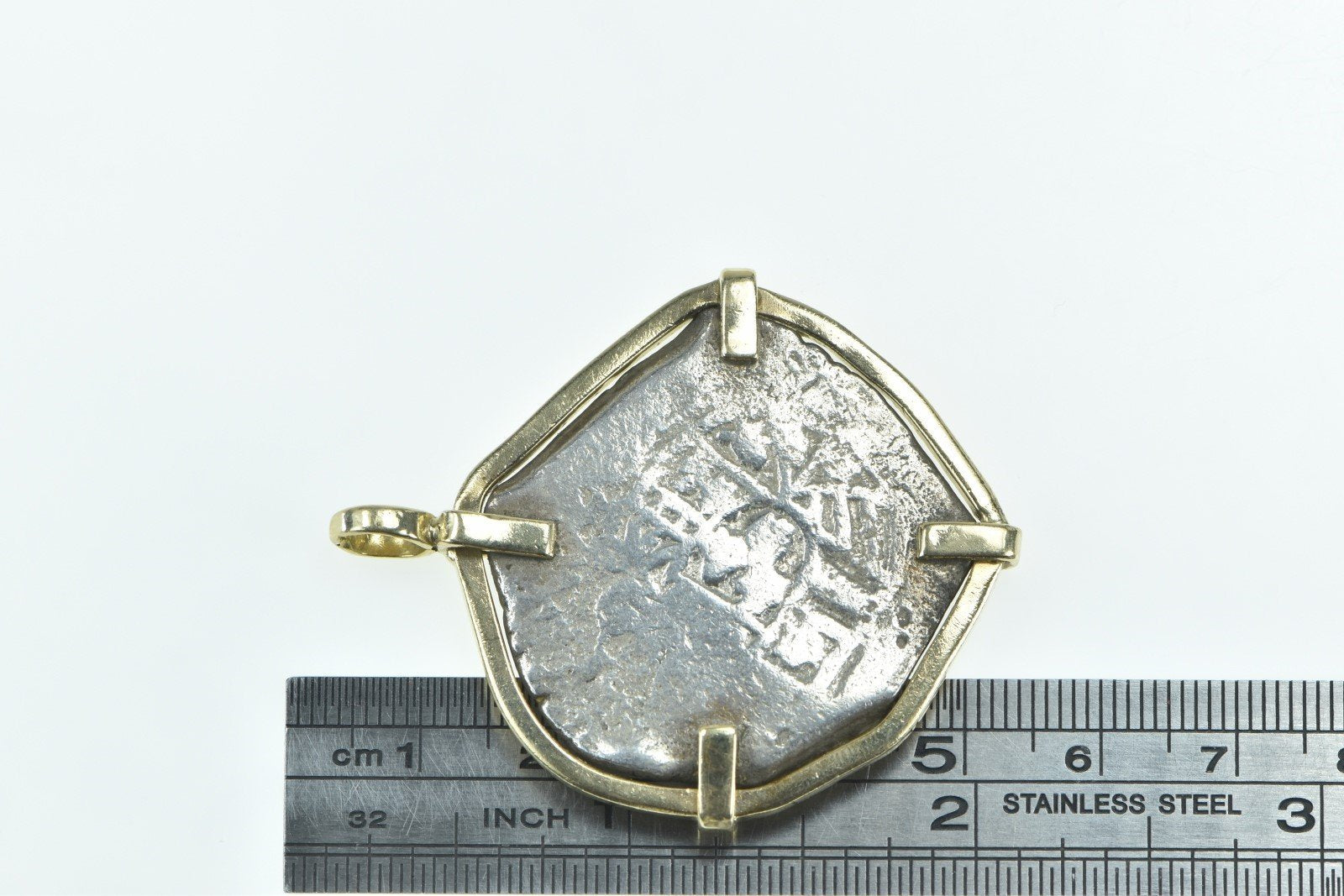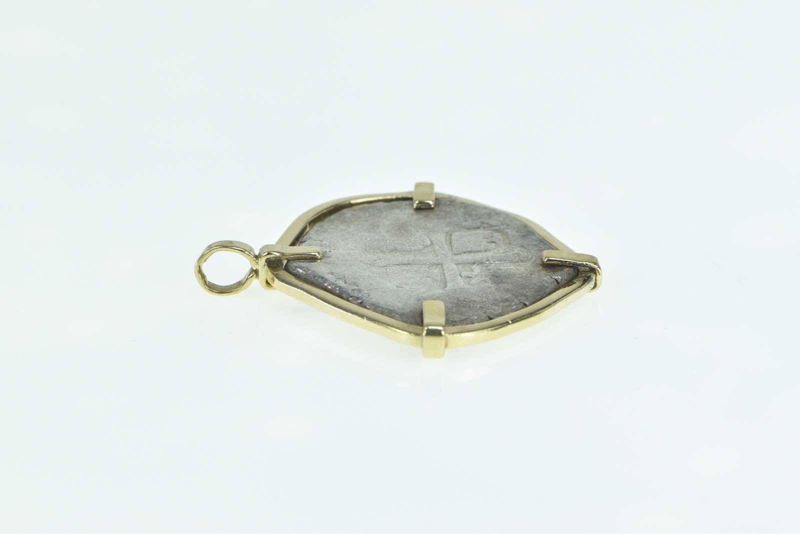 ·Item: 14K Vintage Spanish Silver Shipwreck Coin Charm/Pendant Yellow Gold