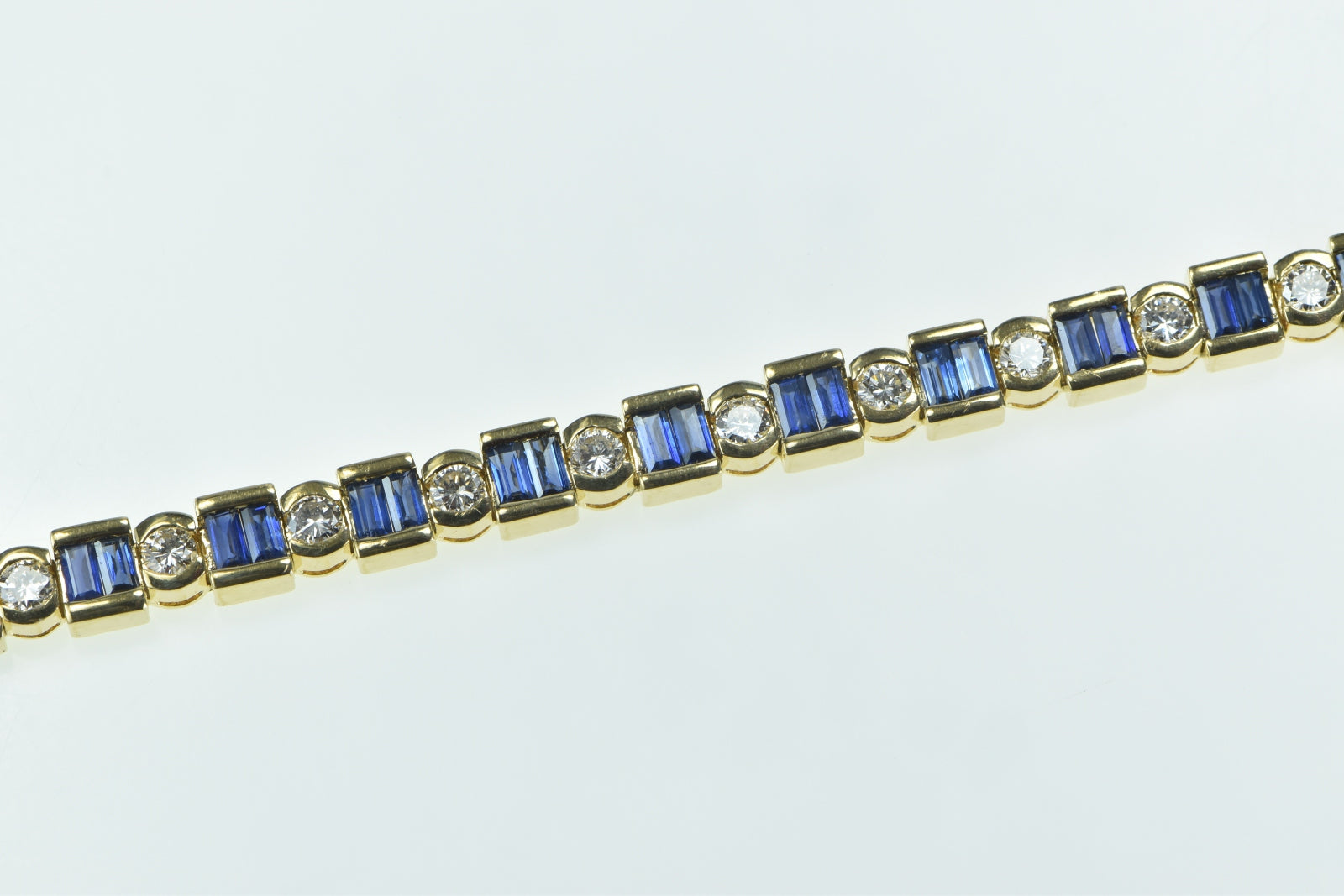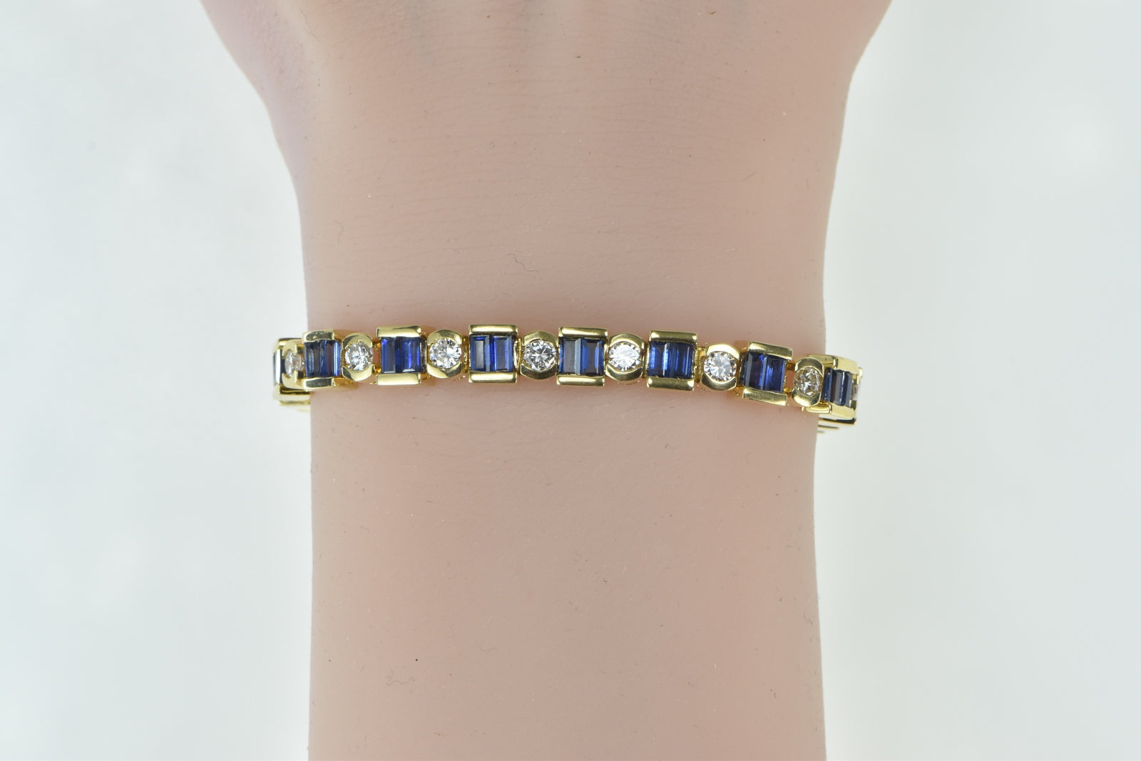 ·Item: 18K 6.45 Ctw Baguette Sapphire Diamond Tennis Bracelet 7 Yellow Gold