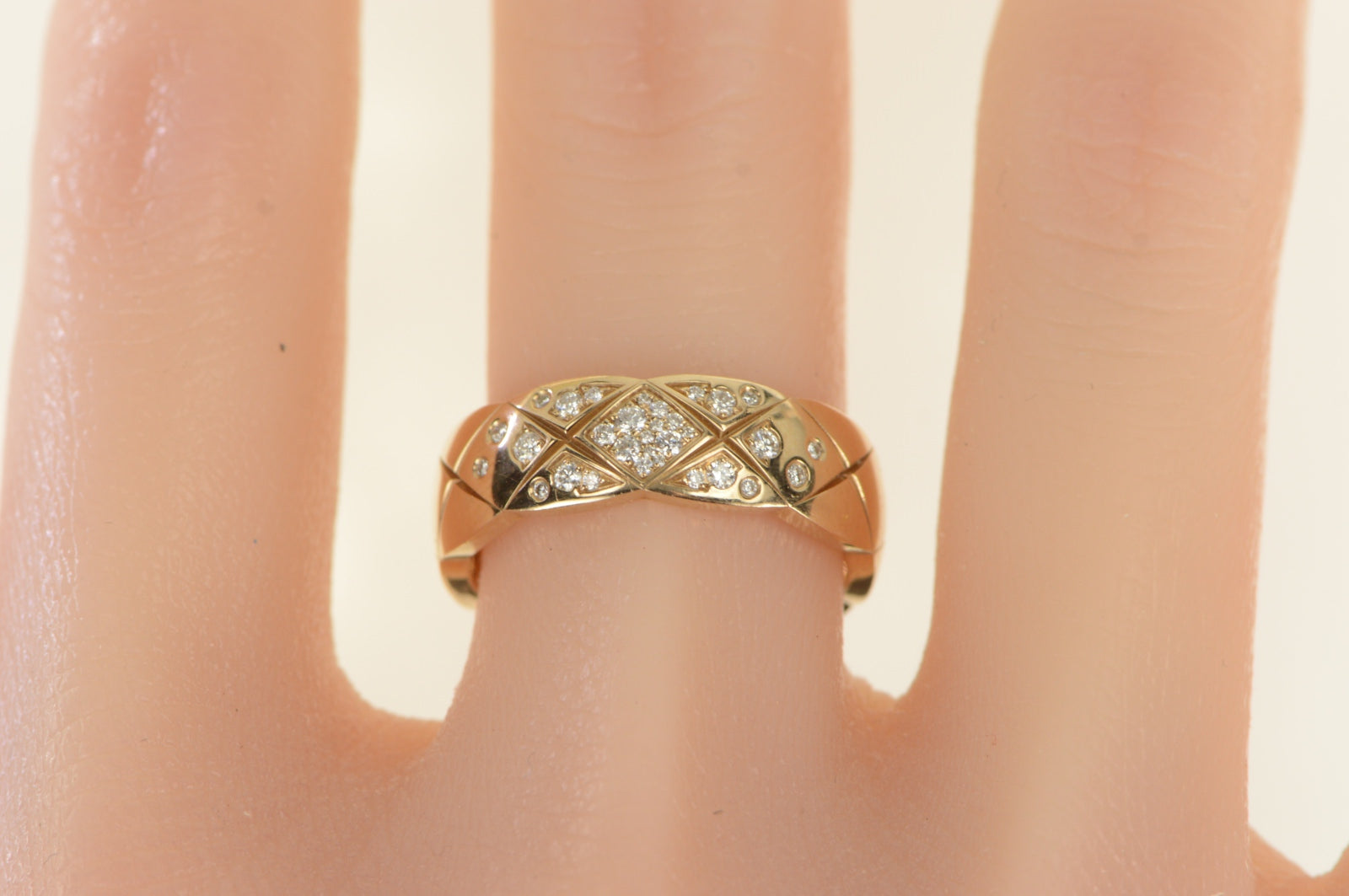·Item: 18K Chanel Coco Crush Diamond Checkered Ring Size 8.75 Yellow Gold