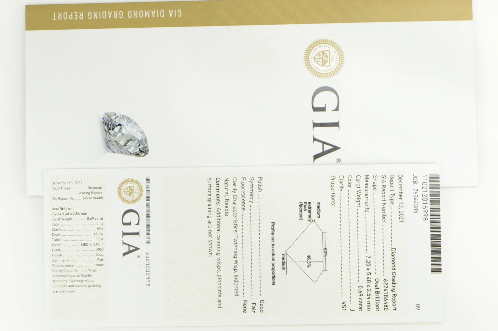 ·Item: GIA 0.69 Ct Oval Cut J Color VS1 Diamond