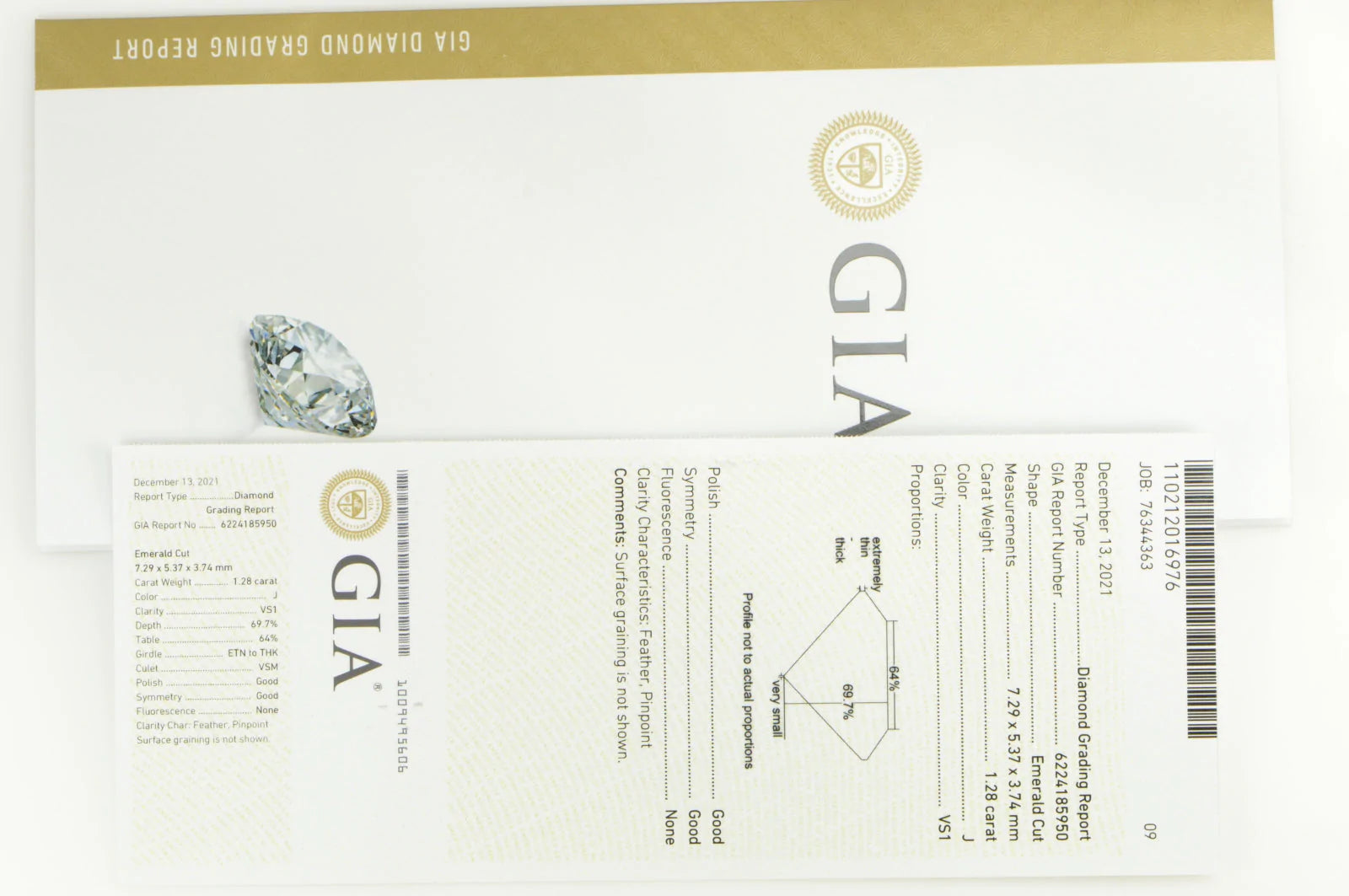 ·Item: GIA 1.28 Emerald Cut J Color VS1 Clarity Diamond