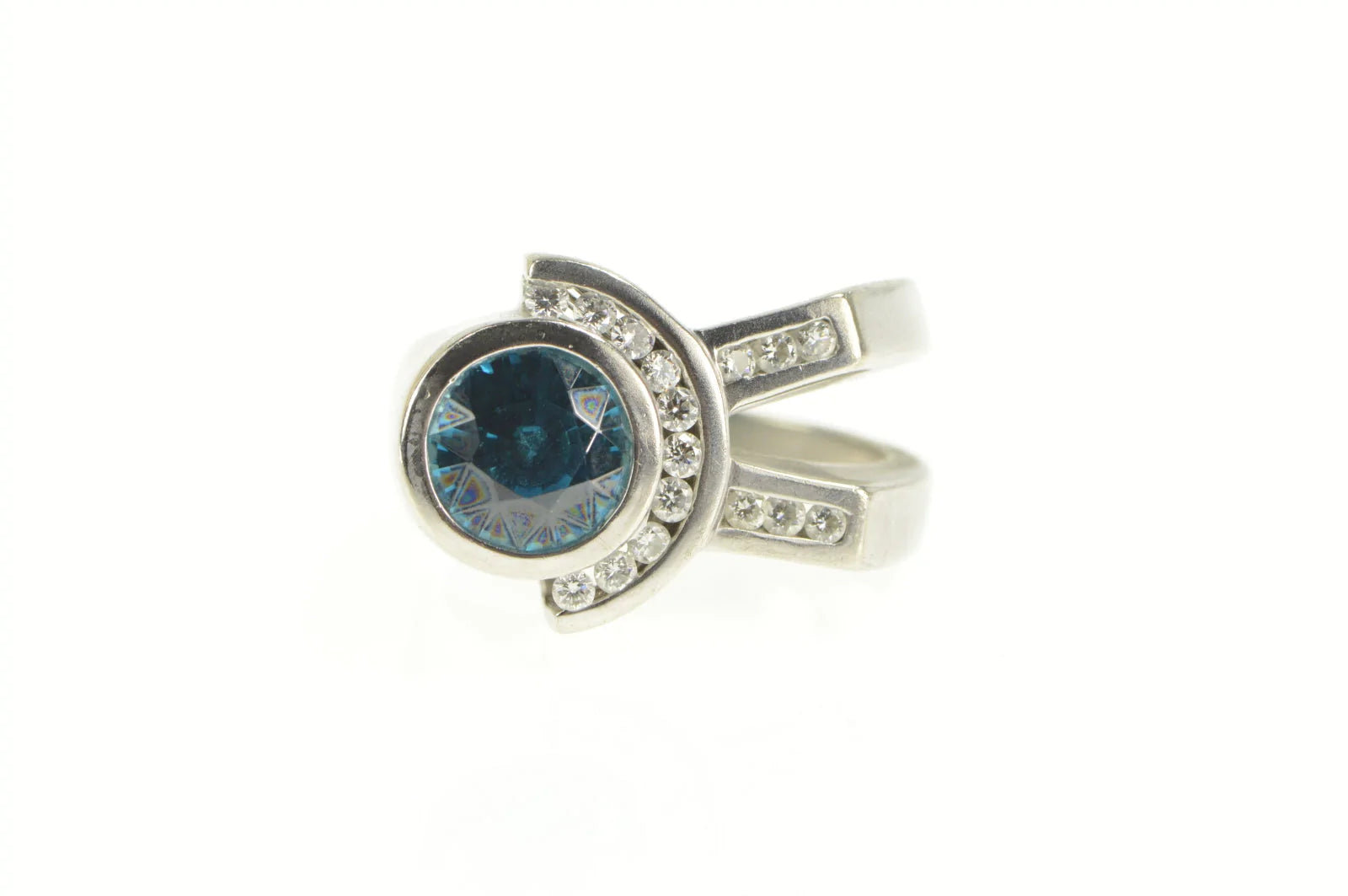 ·Item: Palladium 4.18 Ctw Blue Zircon Diamond Geometric Ring Size 7.25