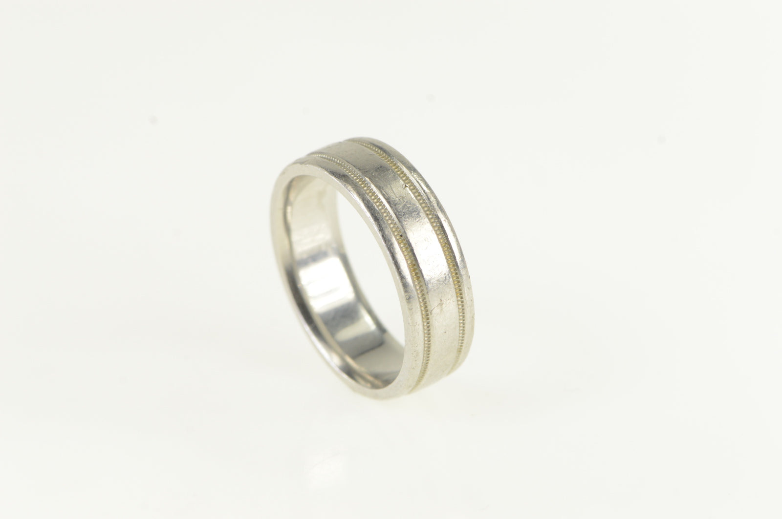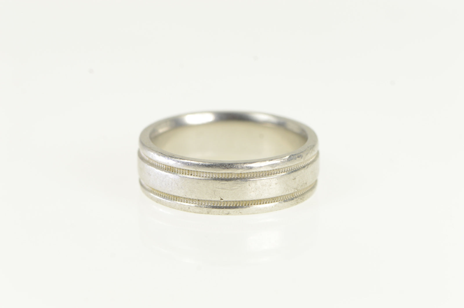 ·Item: Platinum 7.0mm Grooved Novel Wedding Band Ring Size 10