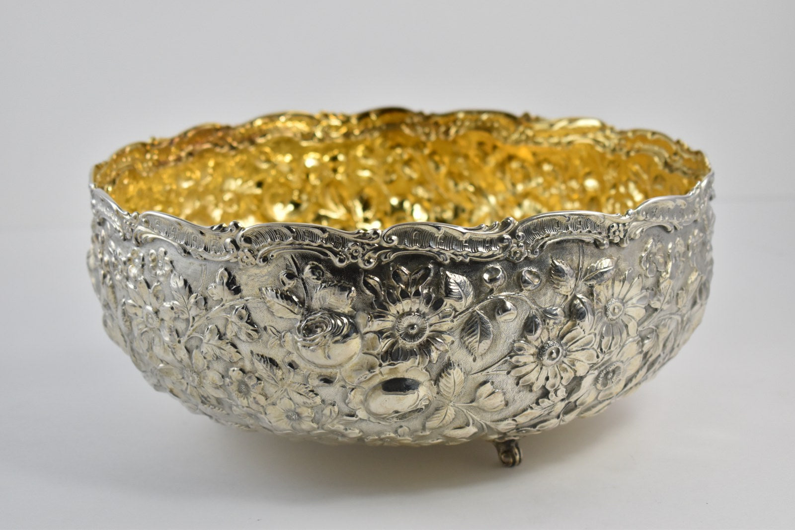 ·Item: Sterling Silver Galmer Ltd Repousse Floral Serving Bowl