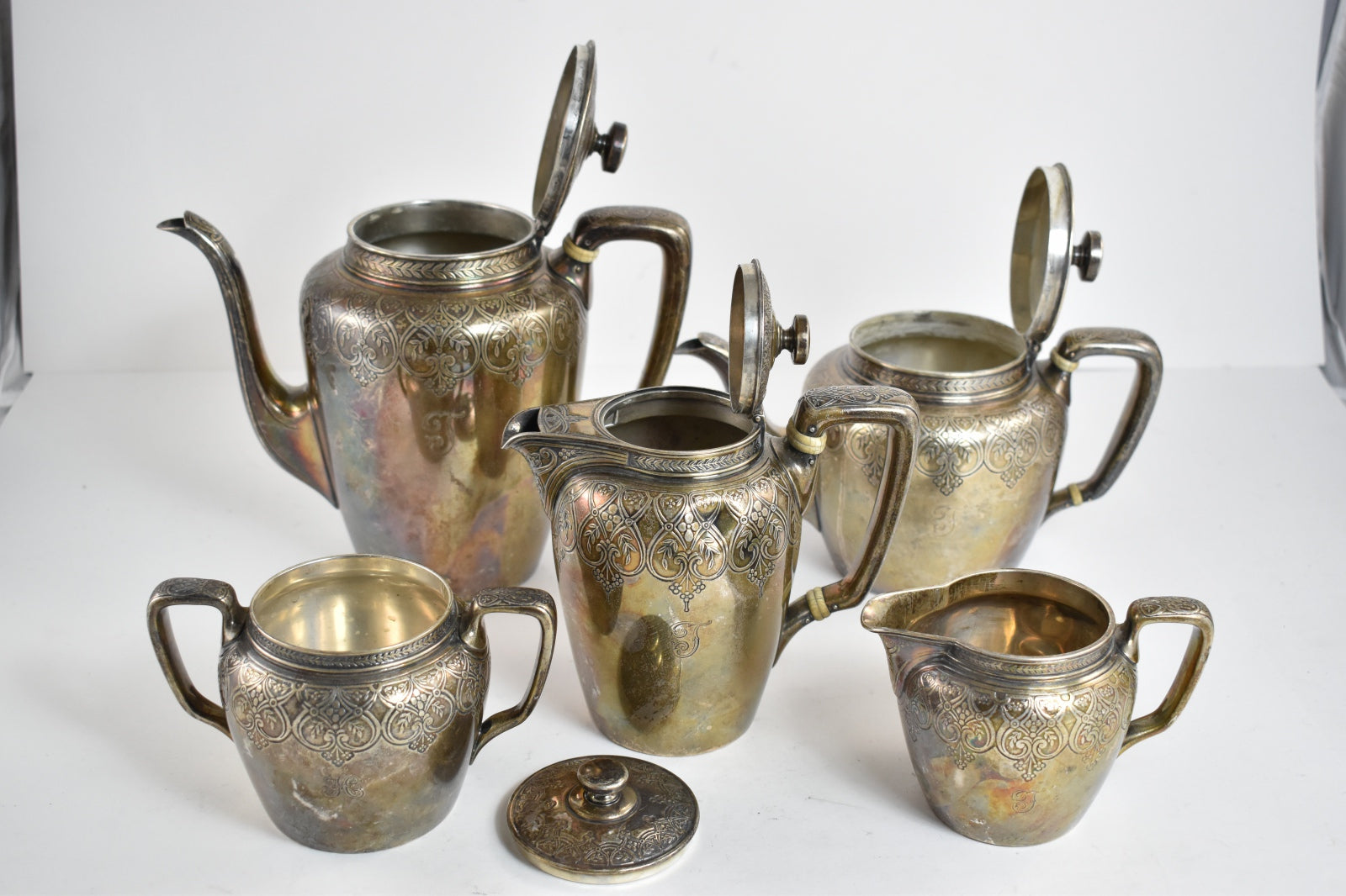 ·Item: Sterling Silver Tiffany & Co Floral 18143 Tea Service Set Monogram T 5 pcs