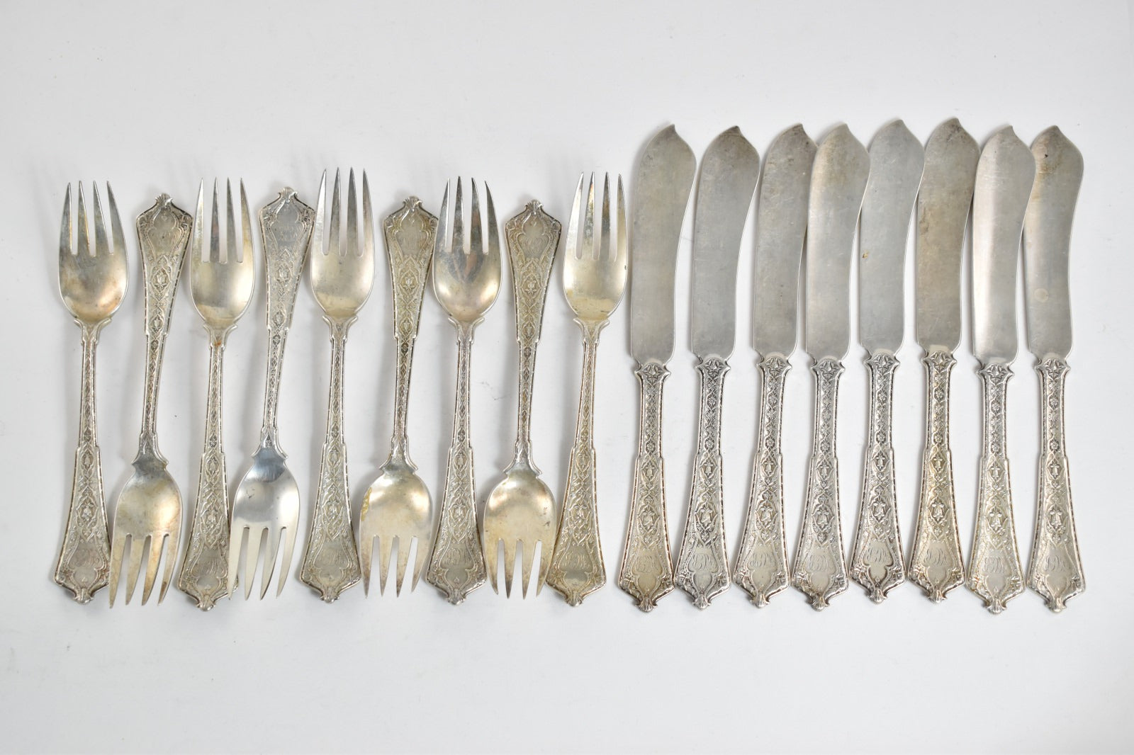 ·Item: Sterling Silver Tiffany & Co Persian Fish Set (8 full sets, 1 partial)