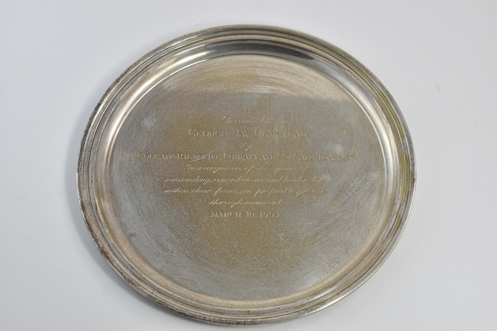 ·Notes: This plate is inscribed "Presented to George "Jay" Olmstead by Colgate Palmolive Company & Colgate Team US in recognition of 35+ years outstanding contributions and leadership with a clear focus on profitable growth through teamwork March 10th 1994"