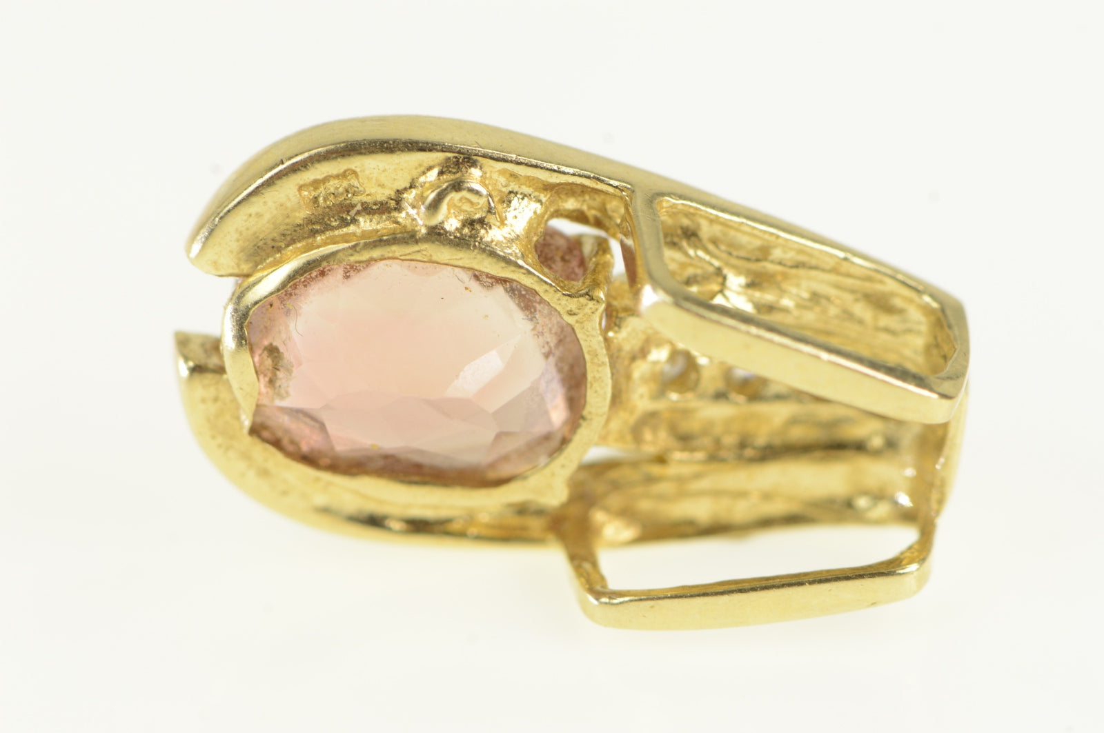 ·Item: 14K Faceted Morganite Diamond Statement Pendant Yellow Gold