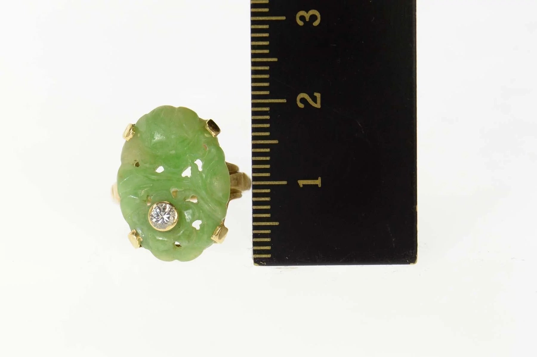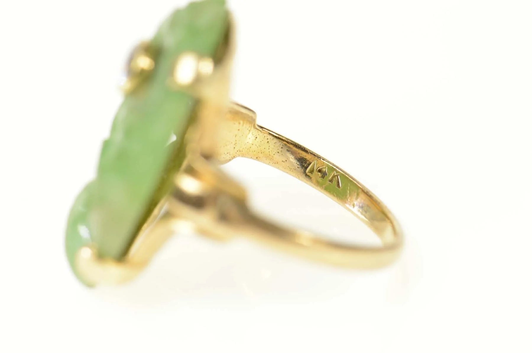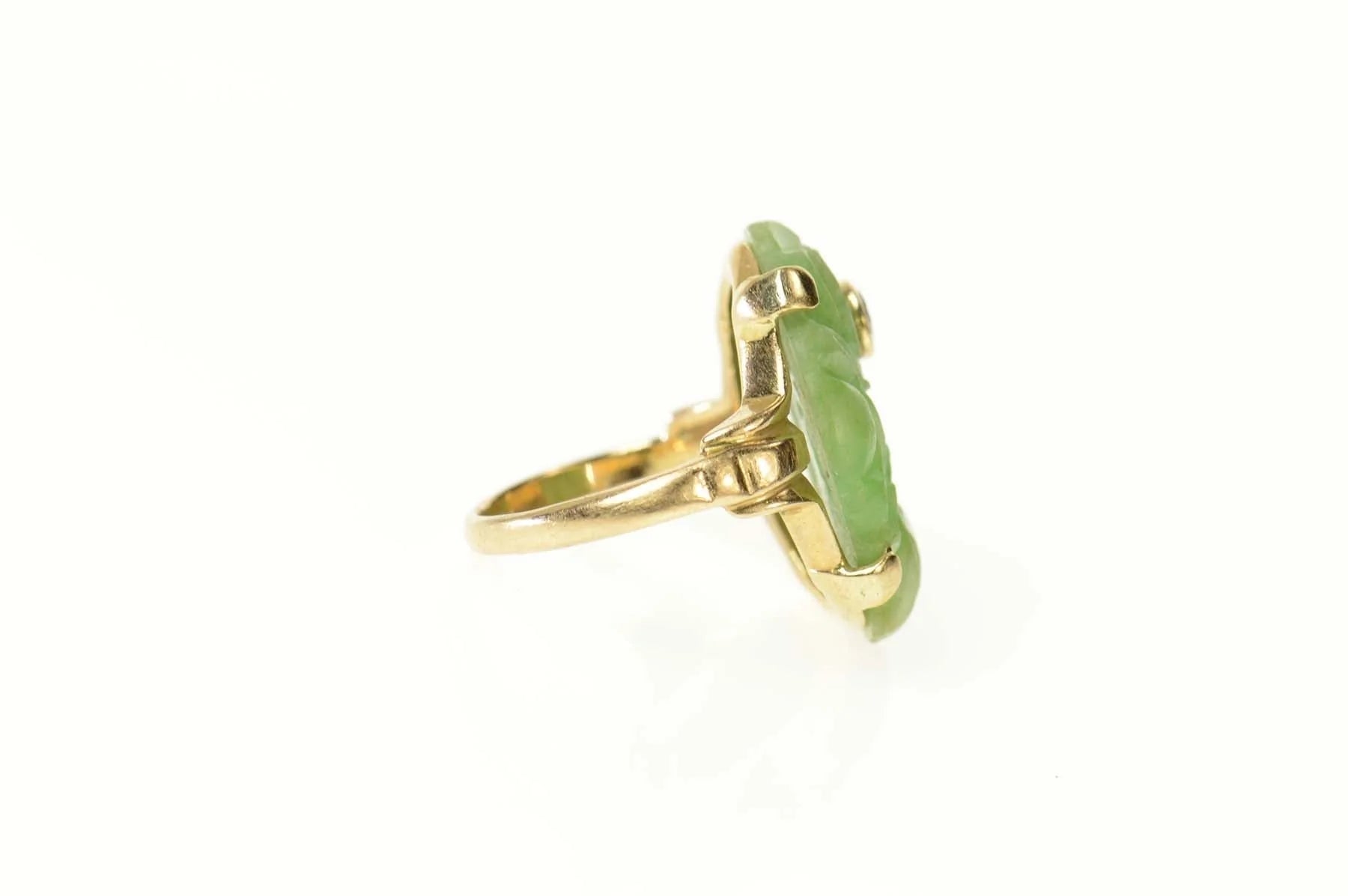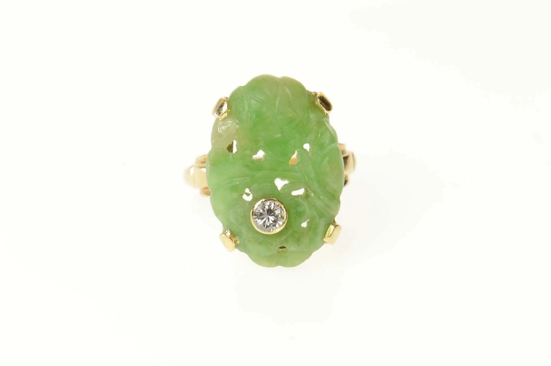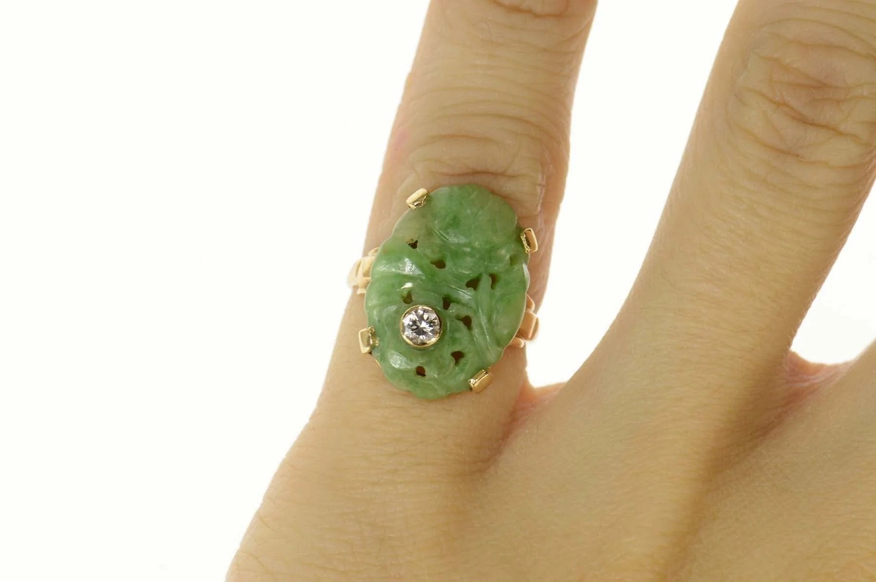 ·Item: 14K Ornate Carved Floral Jade Diamond Cocktail Ring Size 3 Yellow Gold