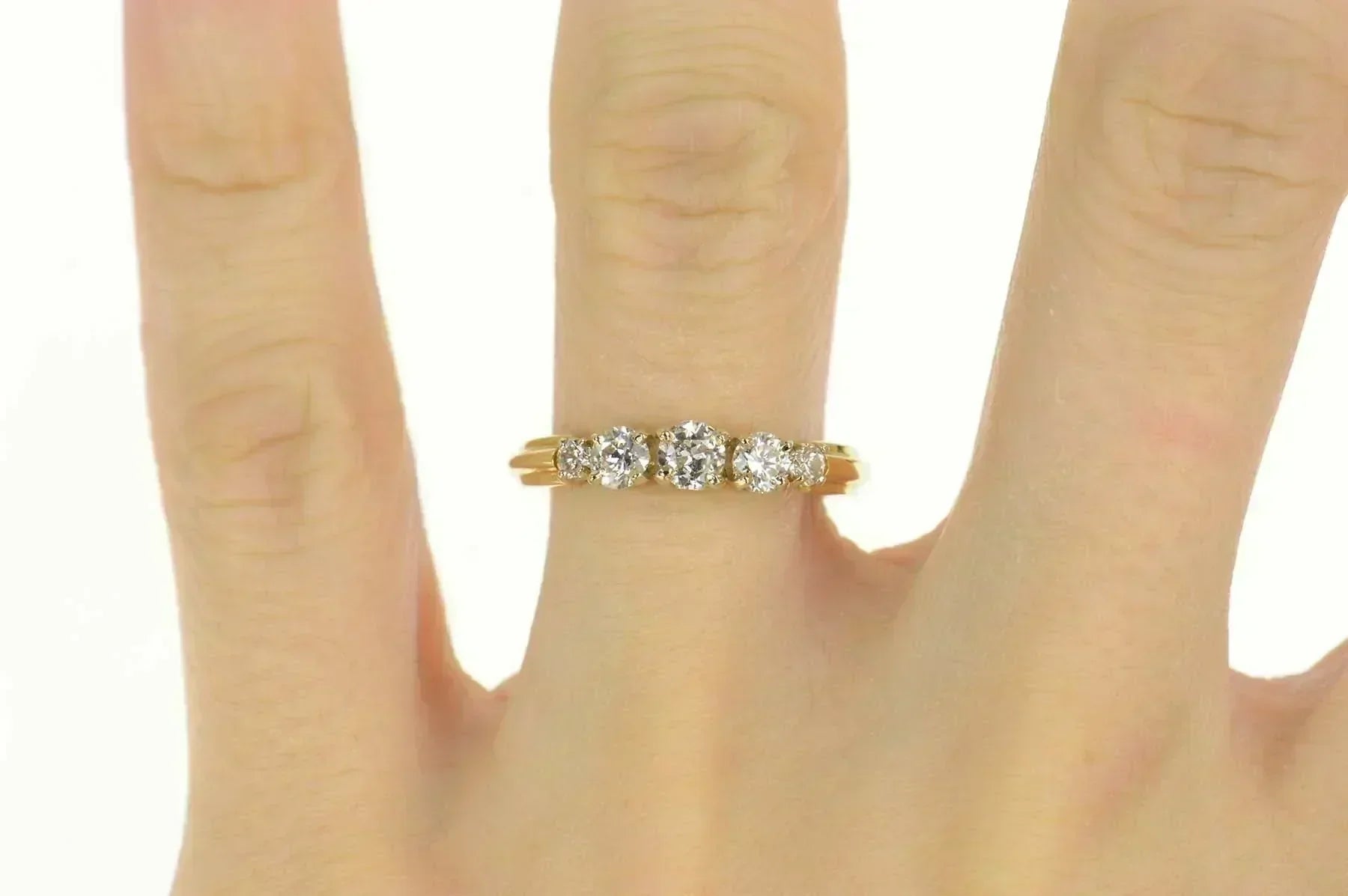 18K 0.61 Ctw Five Stone Classic Diamond Band Ring Size 6 Yellow Gold