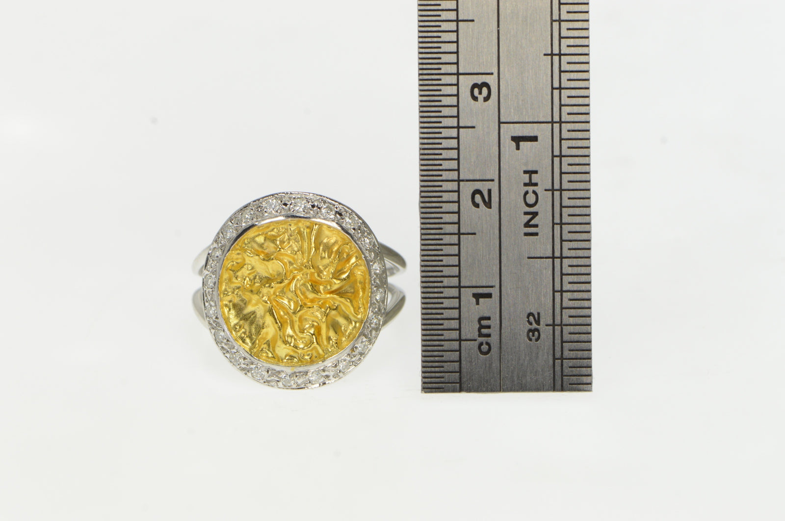 ·Item: 18K Ornate Diamond Halo Textured Statement Ring Size 6.75 Yellow Gold