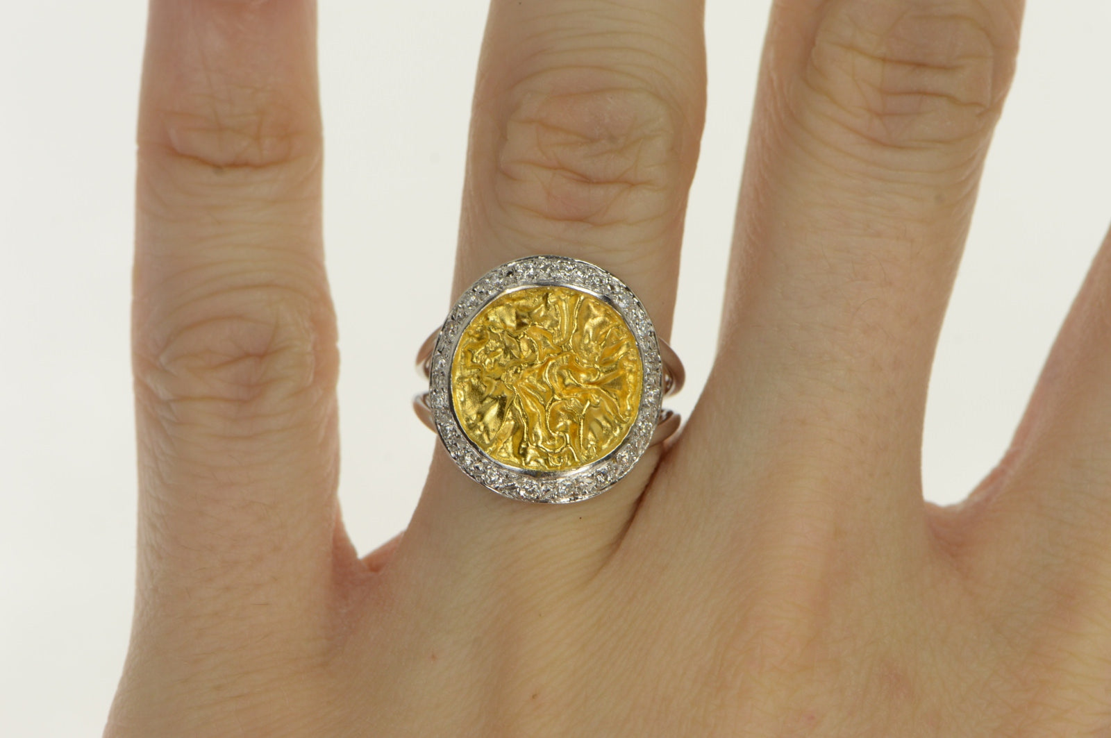 18K Ornate Diamond Halo Textured Statement Ring Yellow Gold