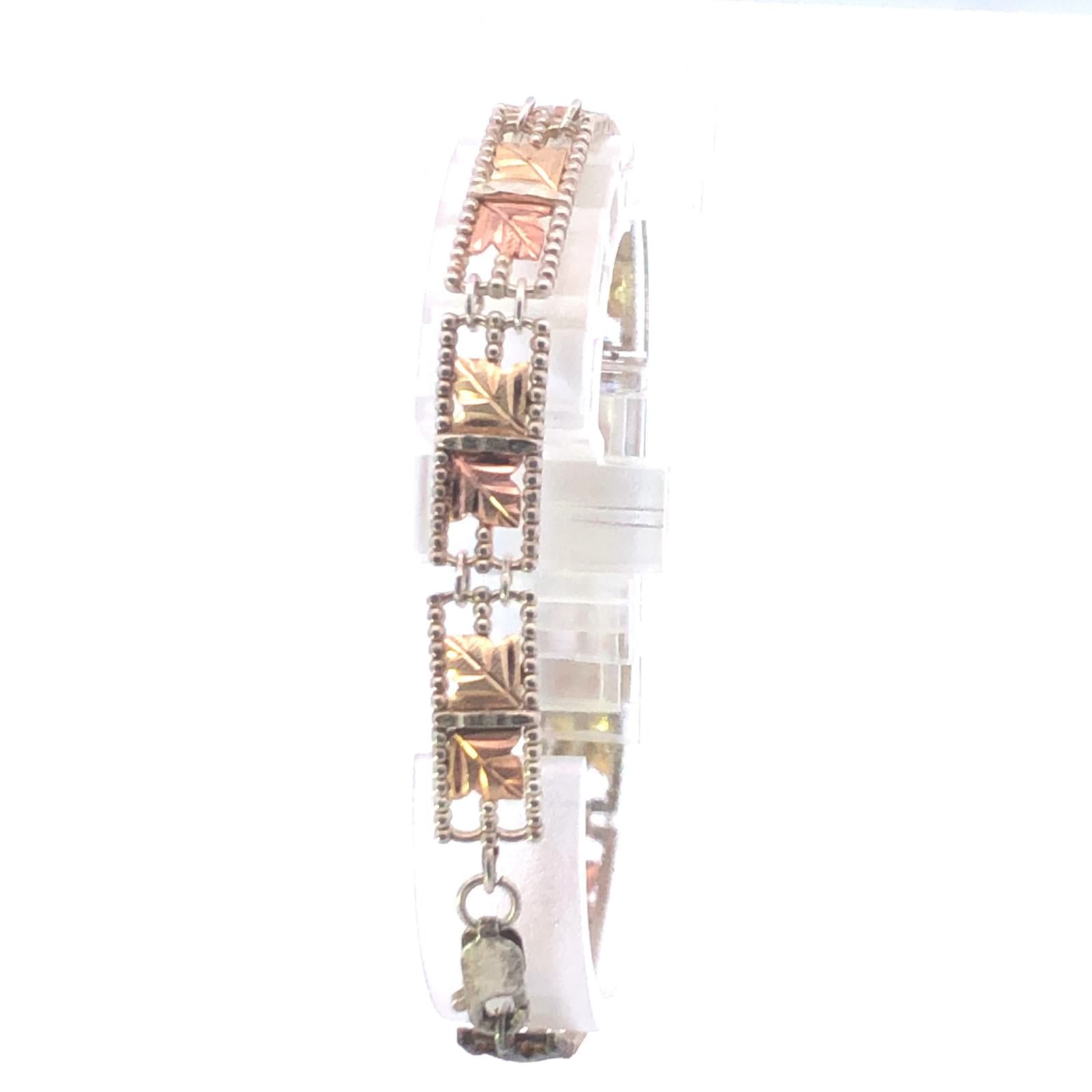 ·Item: Sterling Silver 12k Gold Black Hills Leaf Vintage Bar Bracelet 7"