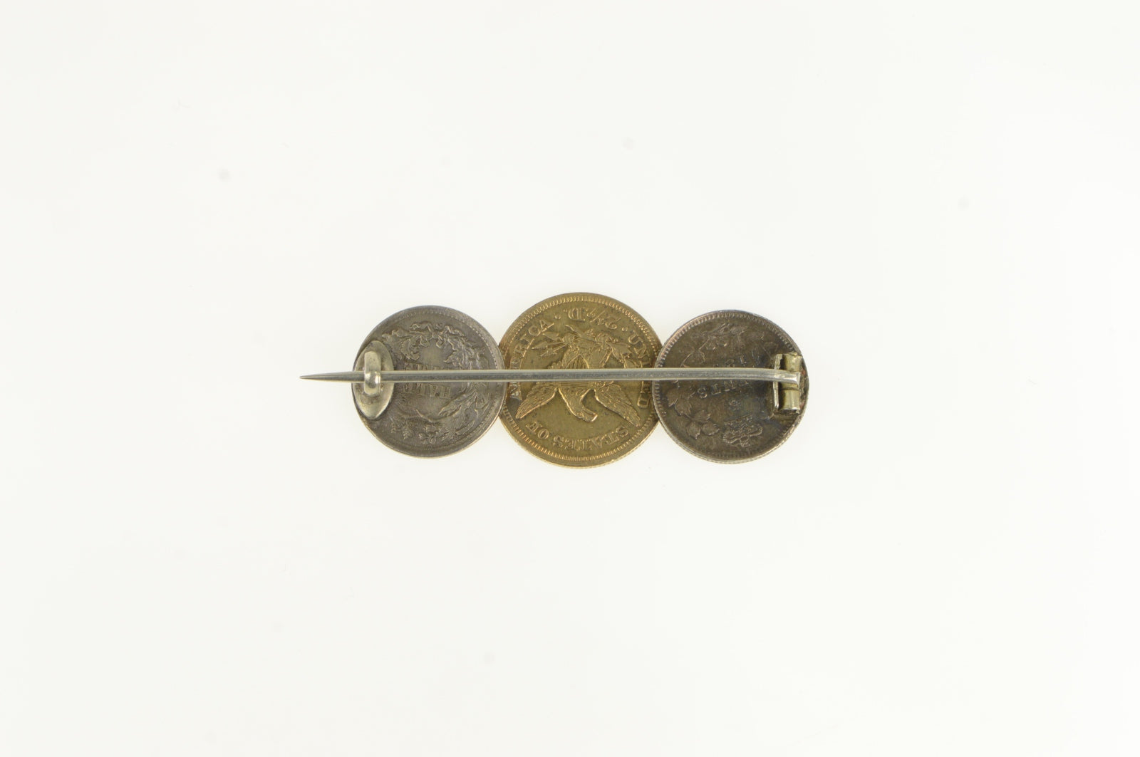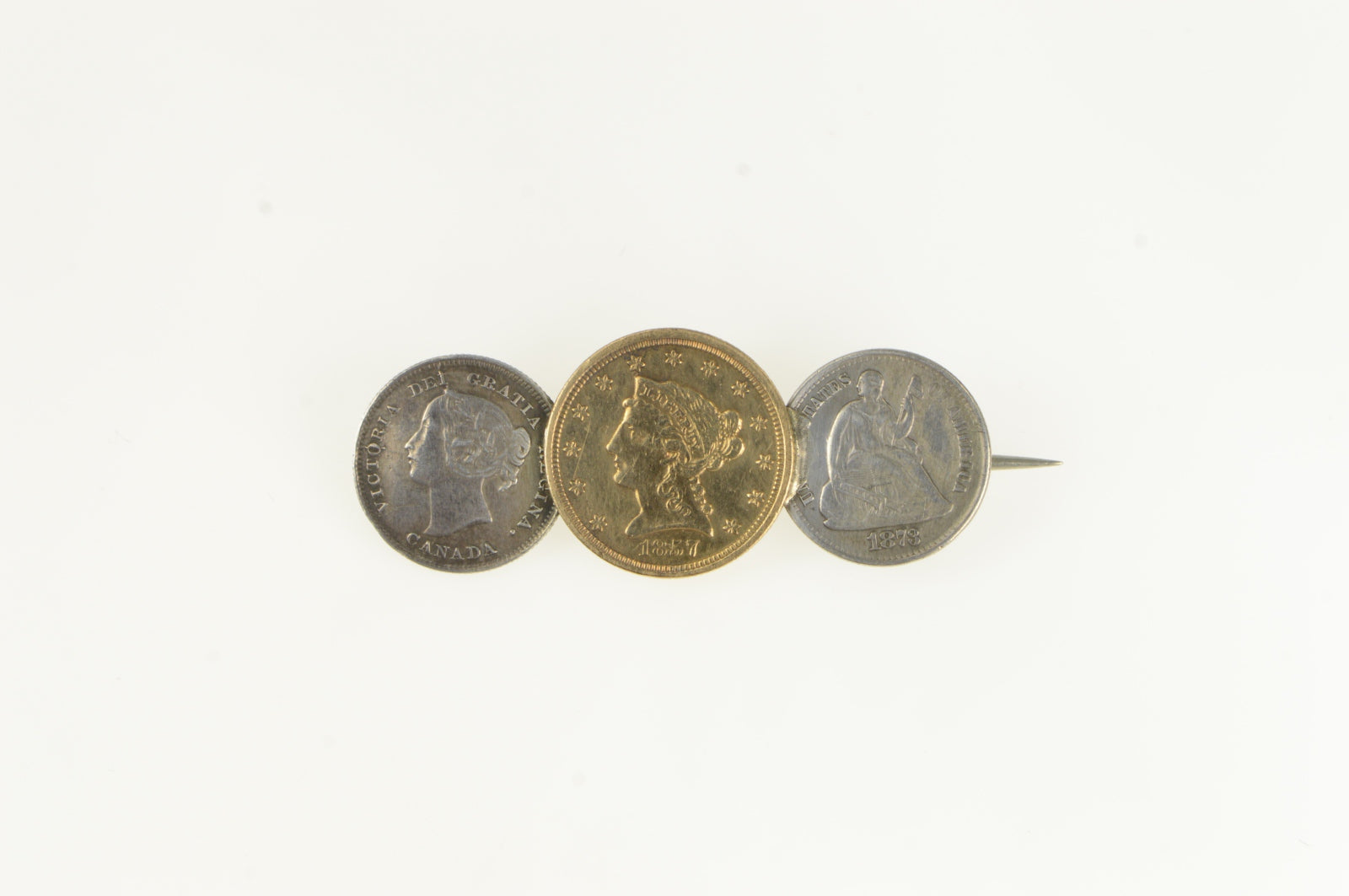 ·Item: Sterling Silver 1857-97 US Canadian Coin Solid Gold Pin/Brooch
