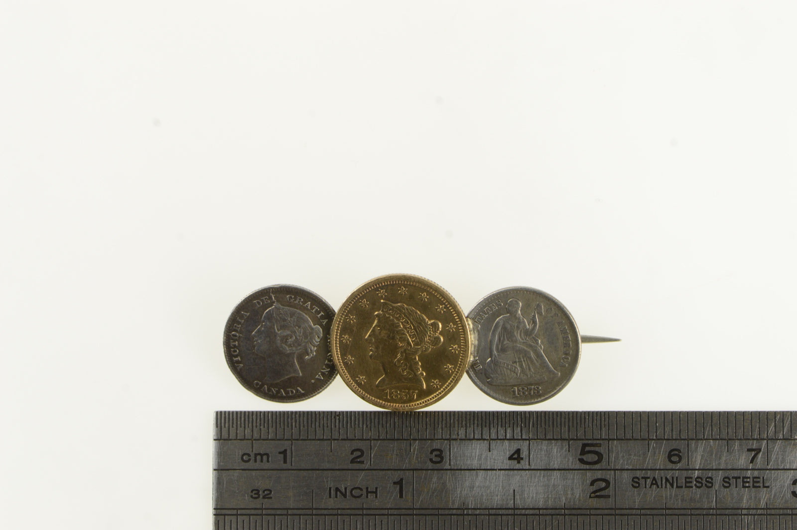 ·Notes: 1897 Canadian 5 cents (silver 900), 1857 Liberty Head Gold $2.50 (Gold - 0.900) , 1873 Seated Liberty Dime (silver - 900)