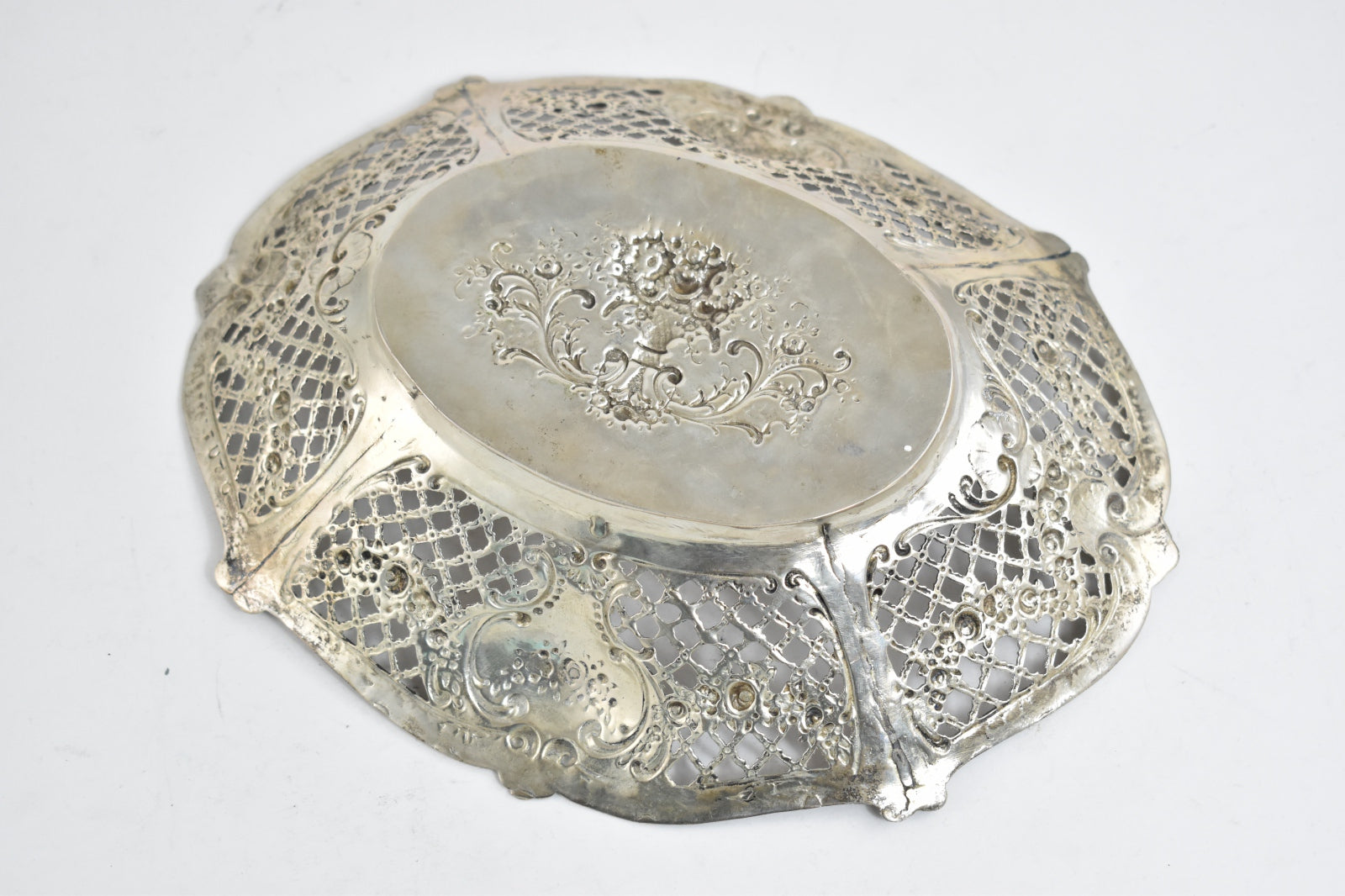 ·Item: Silver Elaborate Repousse Decorative Filigree Fruit Bowl