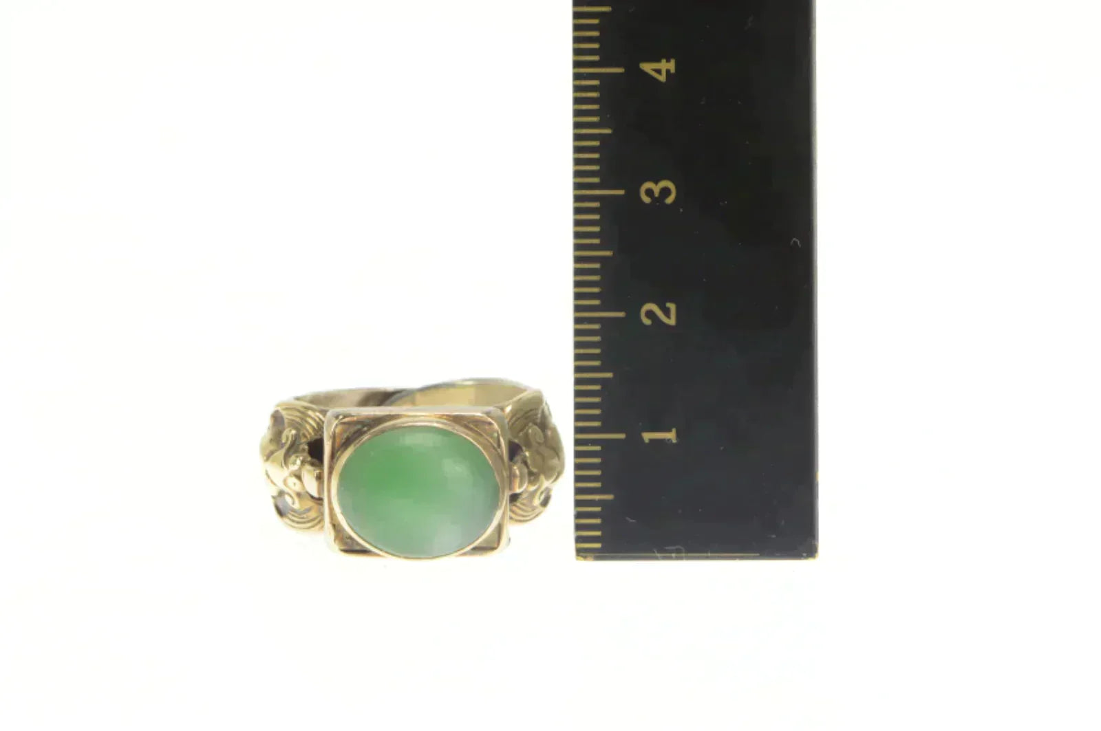 ·Item: Sterling Silver Ornate Chinese Green Chalcedony 18k Two Tone Ring Size 8.25