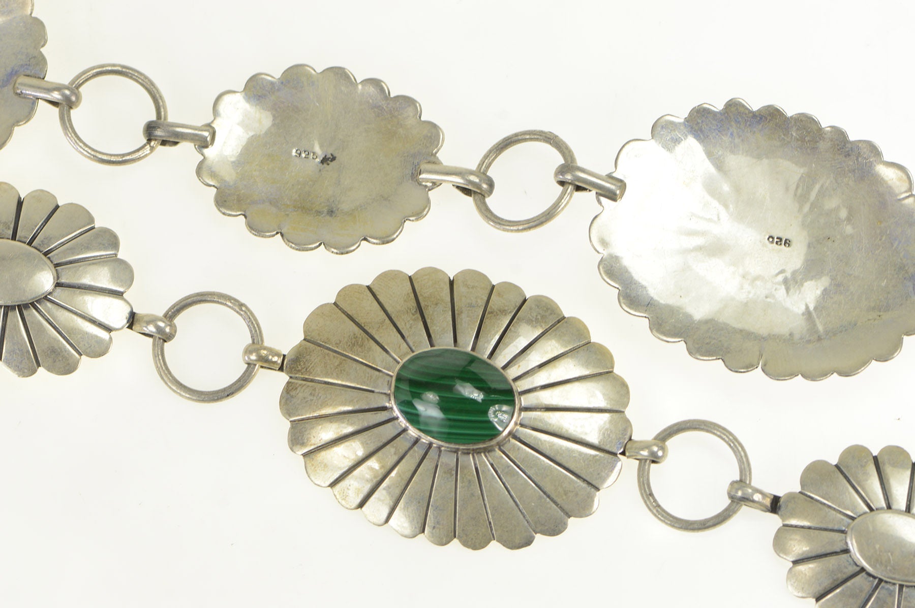 ·Item: Sterling Silver Southwestern Malachite Stamped Oval Belt 39.5"