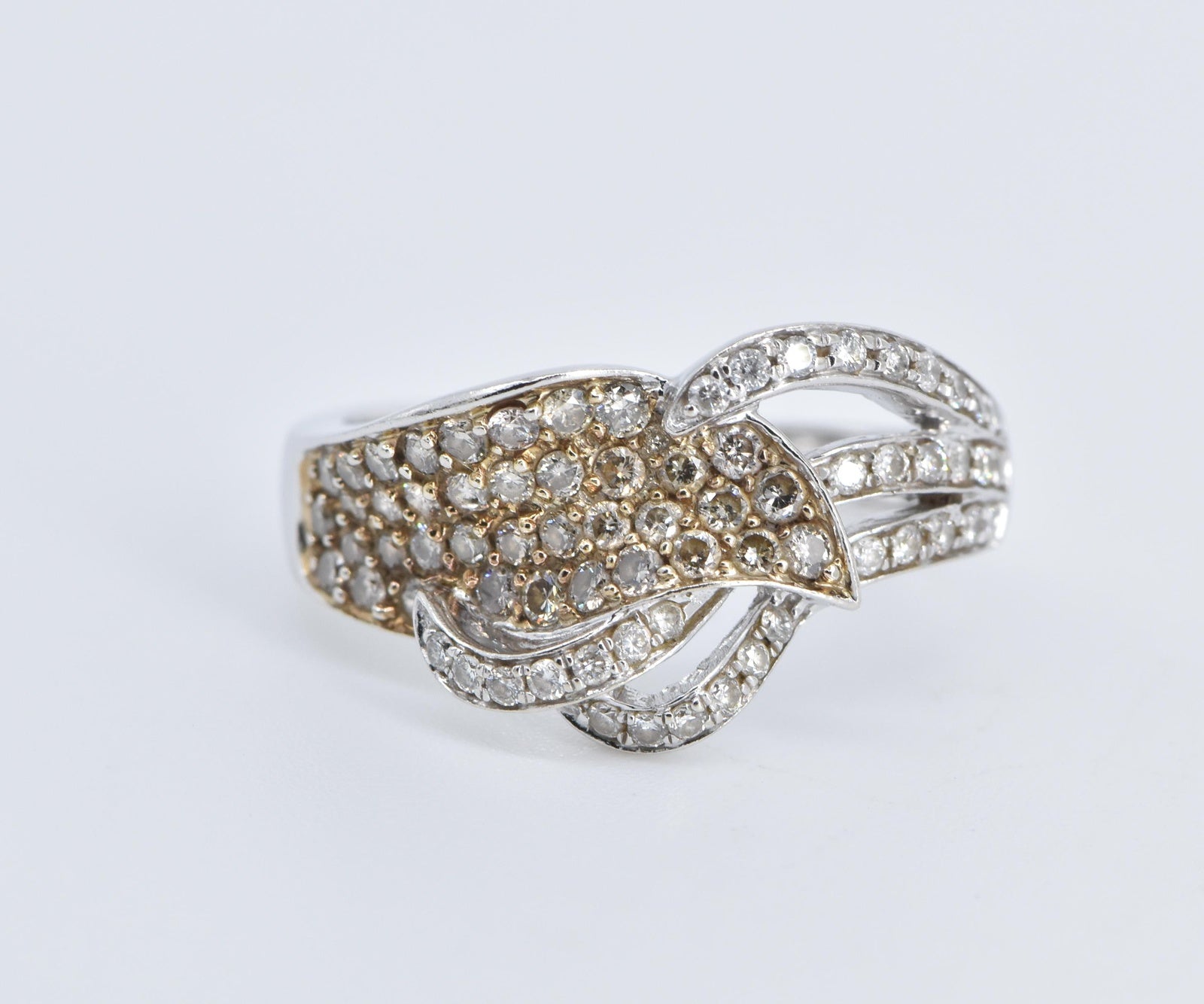 ·Item: 14K 0.65 Ctw Natural Cognac & White Diamond Pave Ring Size 7 White Gold
