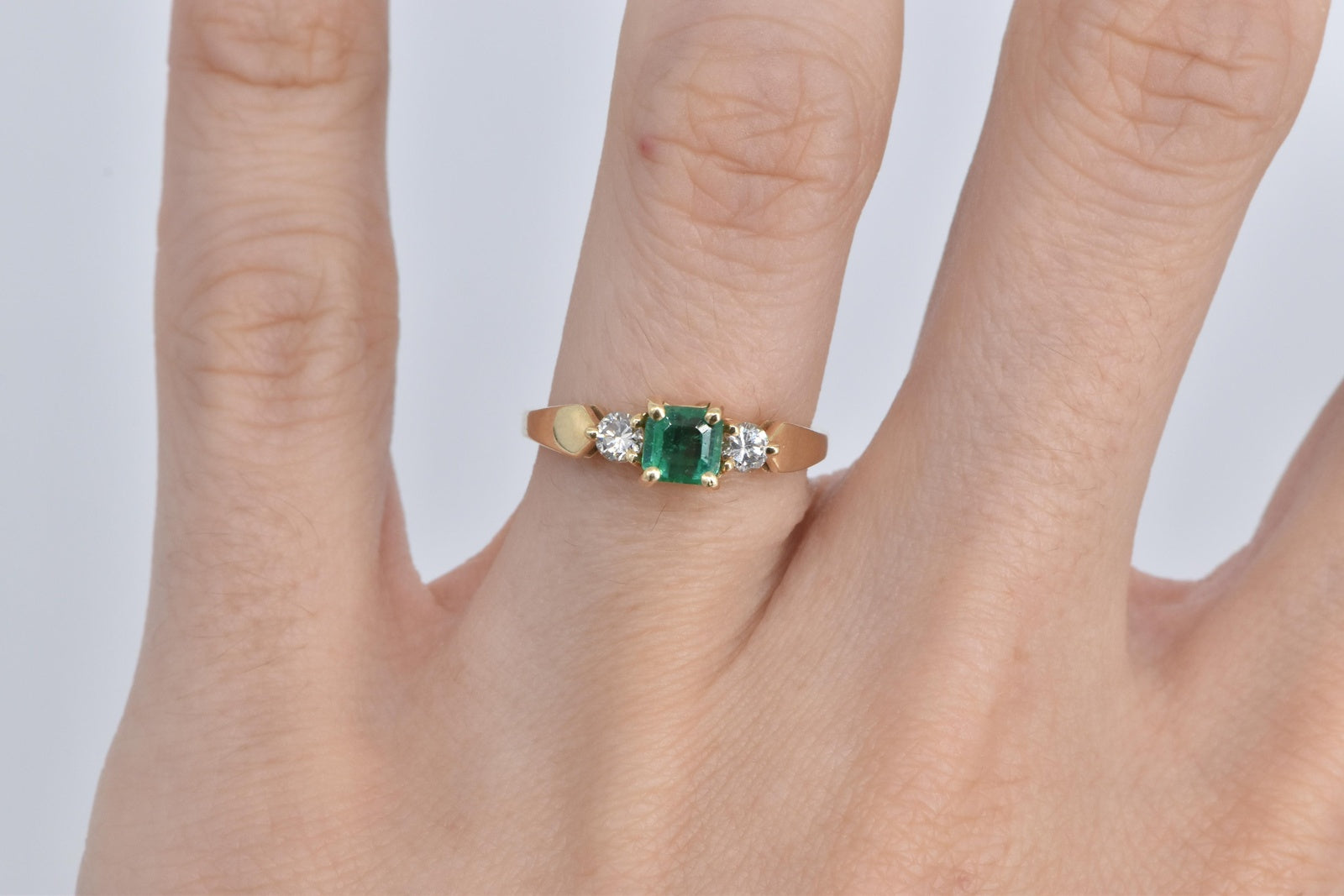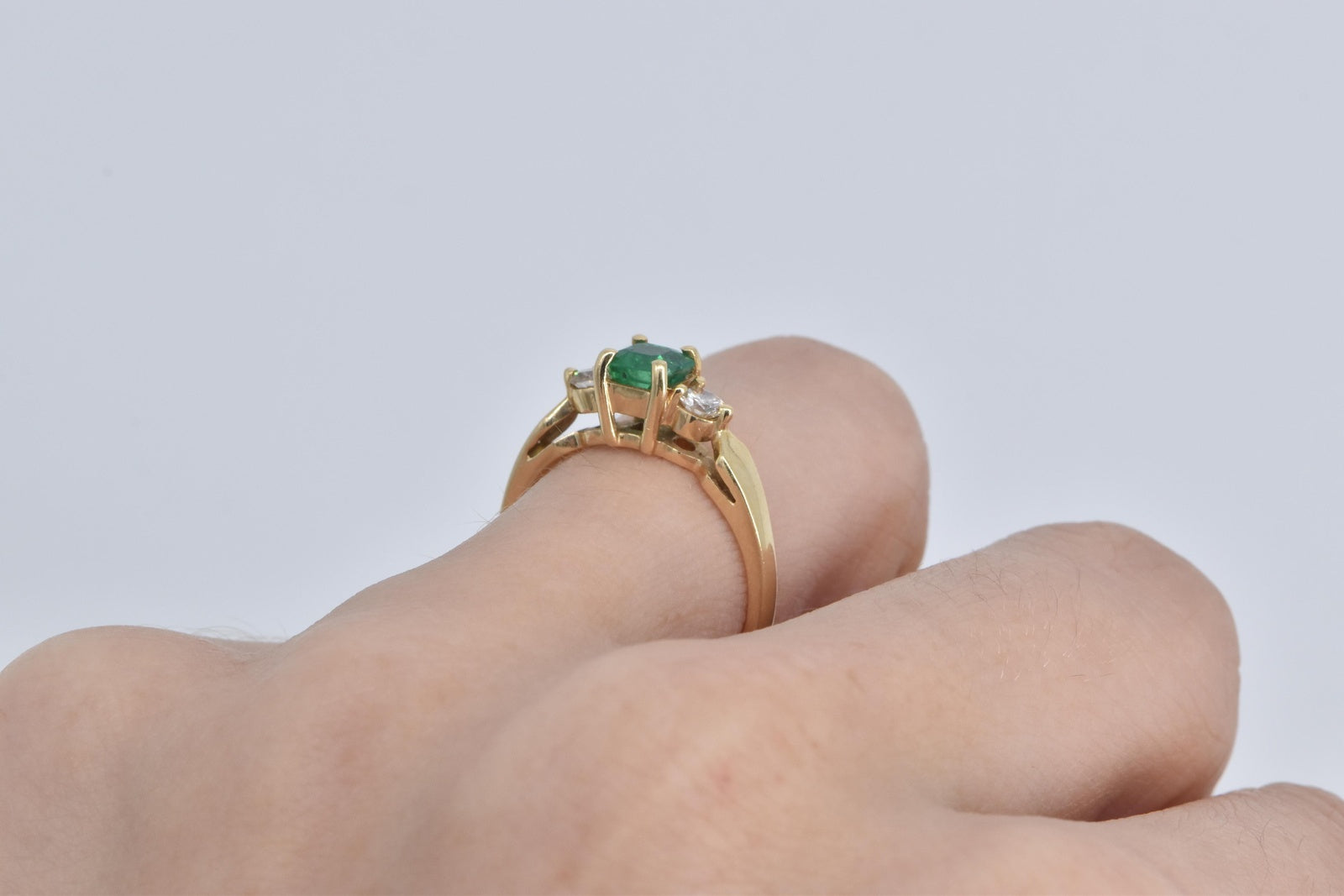 ·Item: 14K 0.72 Ctw Princess Emerald Natural Diamond Ring Size 6.25 Yellow Gold